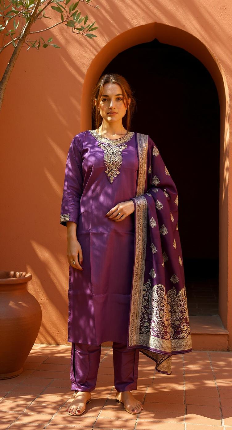 WINE COLOURED WOMEN'S POLYSTER KURTA WITH DUPATTA SET