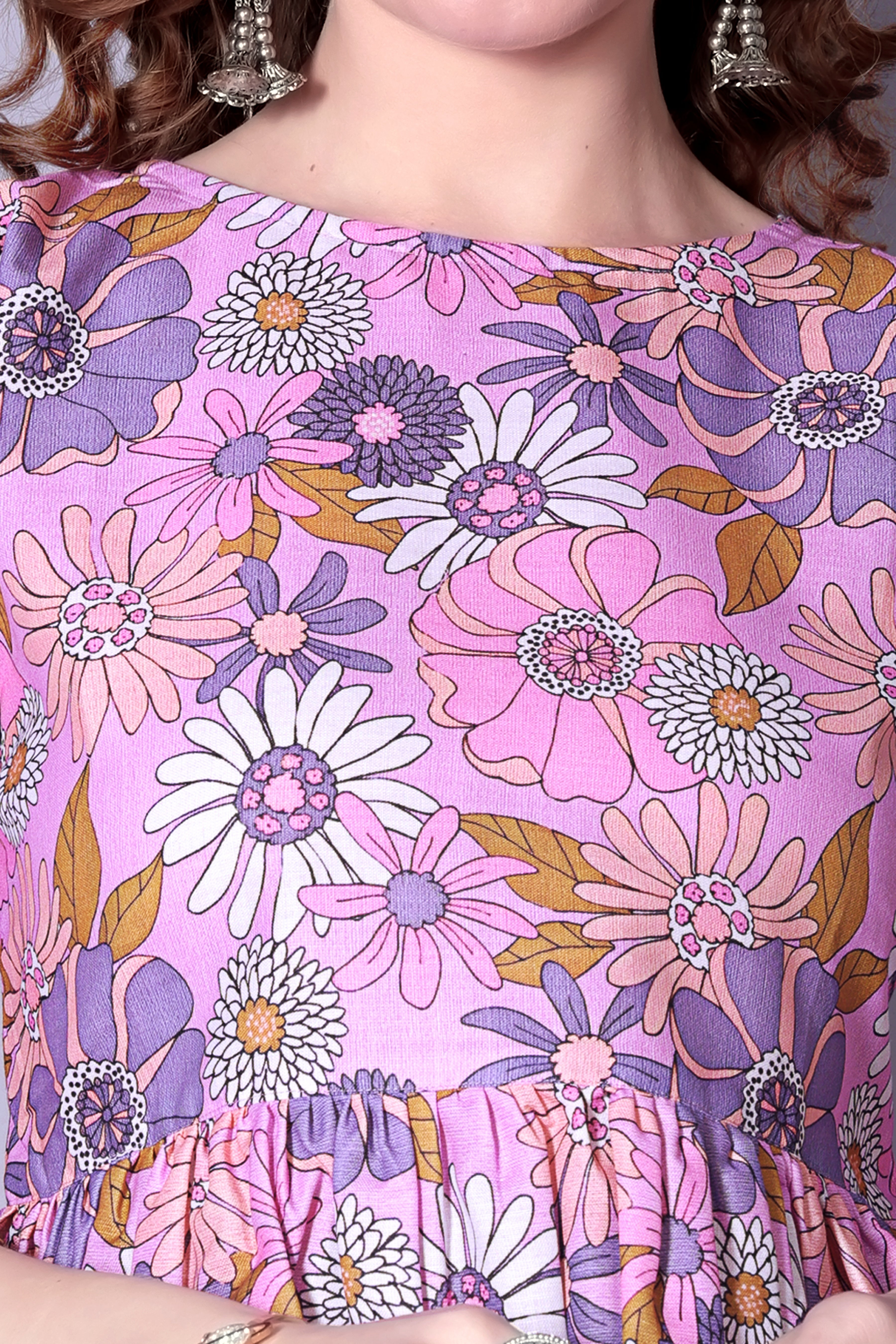 • Product Name: Pink Printed Bell-Sleeve Tunic