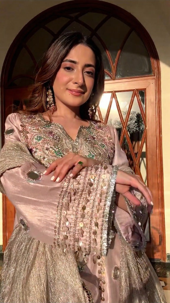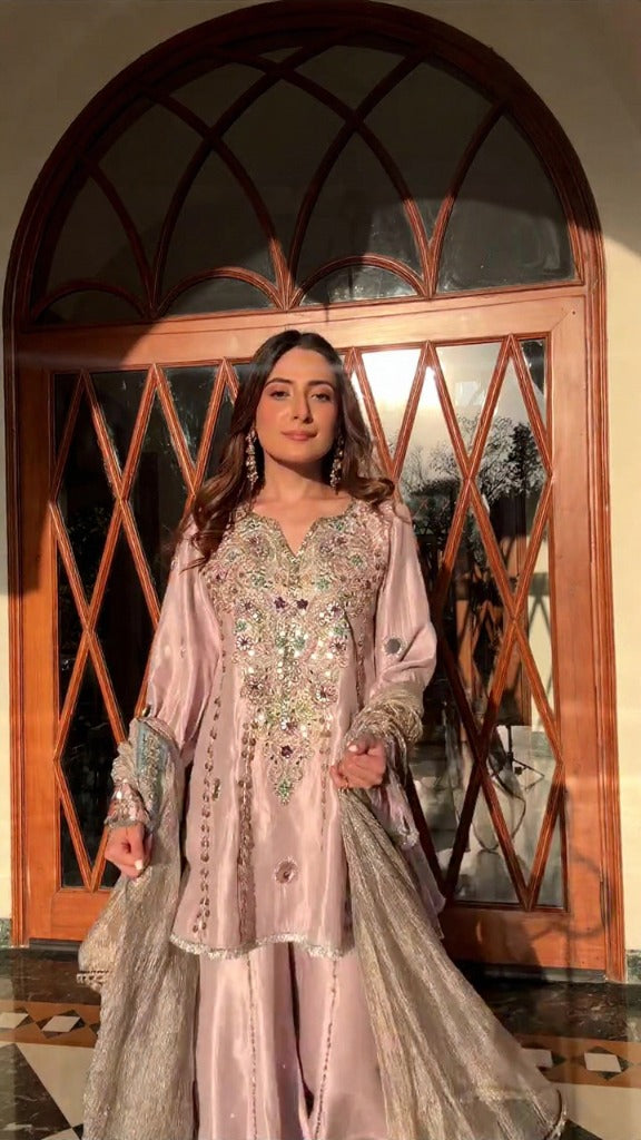 Rosé Luxe Embellished Kurta Set with Organza Dupatta | |