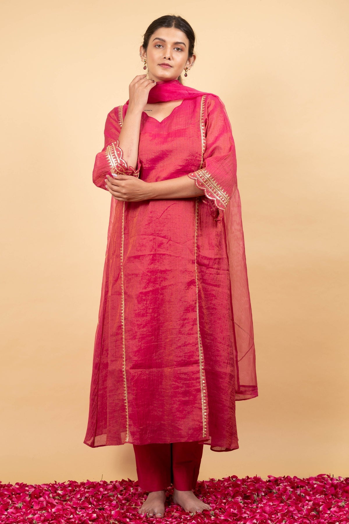 Handwoven Tissue Silk Top Bottom With Dupatta Set | |