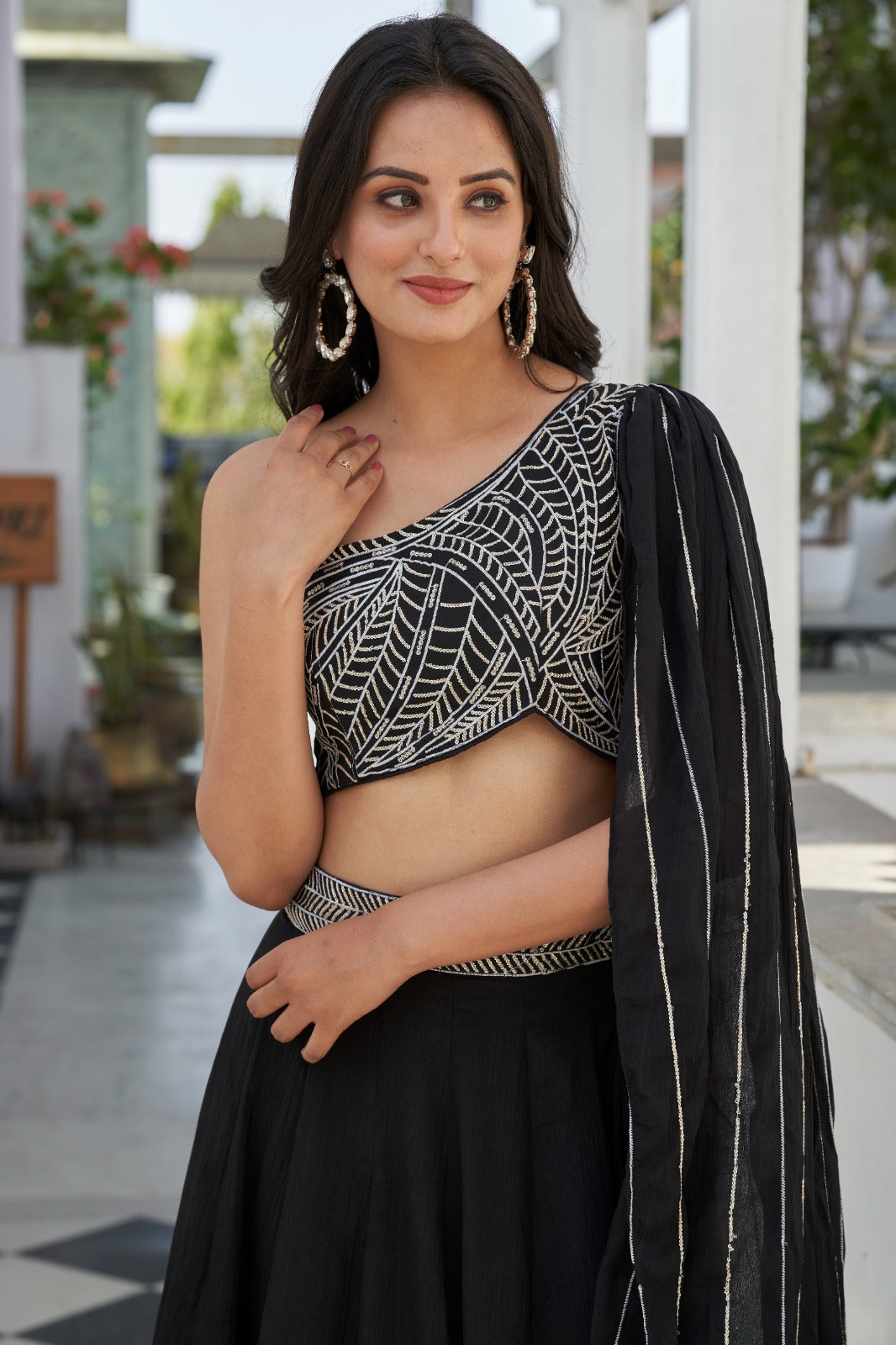 Black Sequins Embroidered Chiffon Lehenga Choli