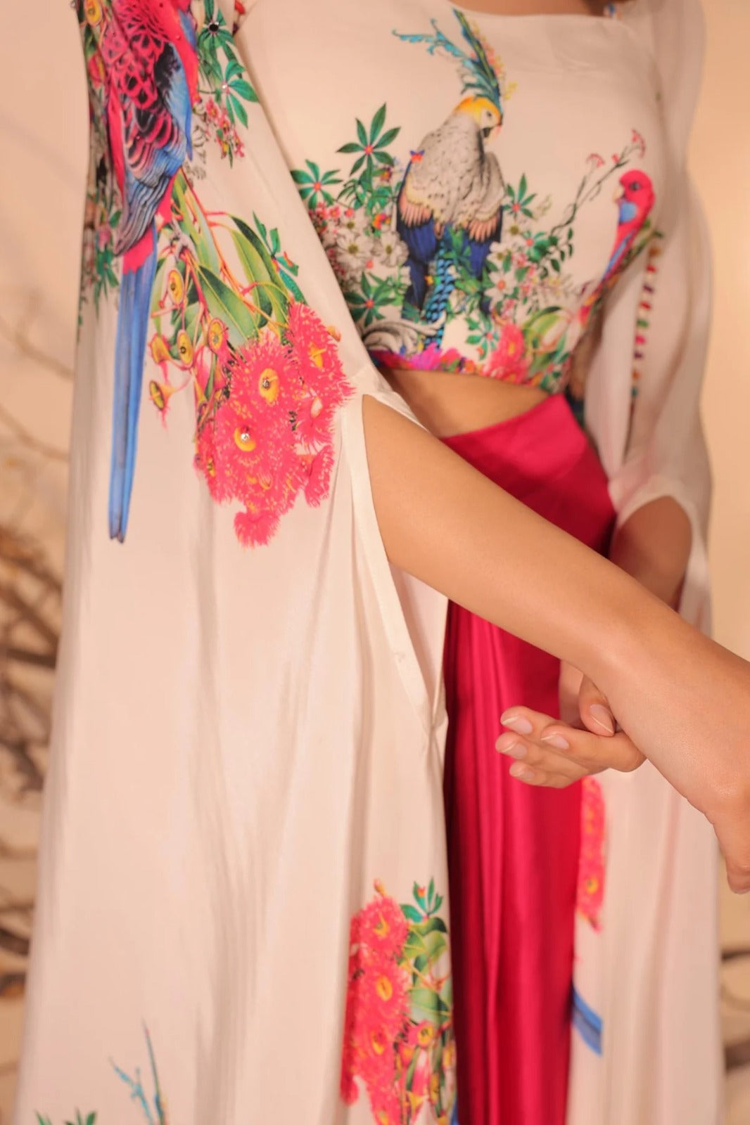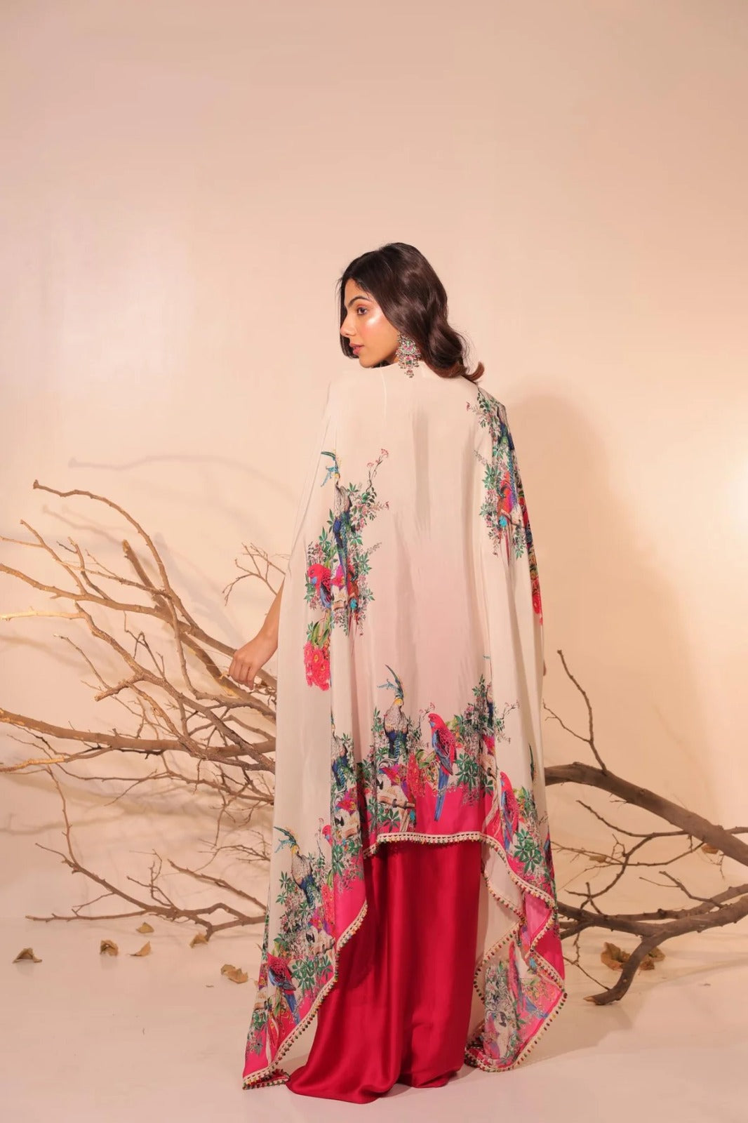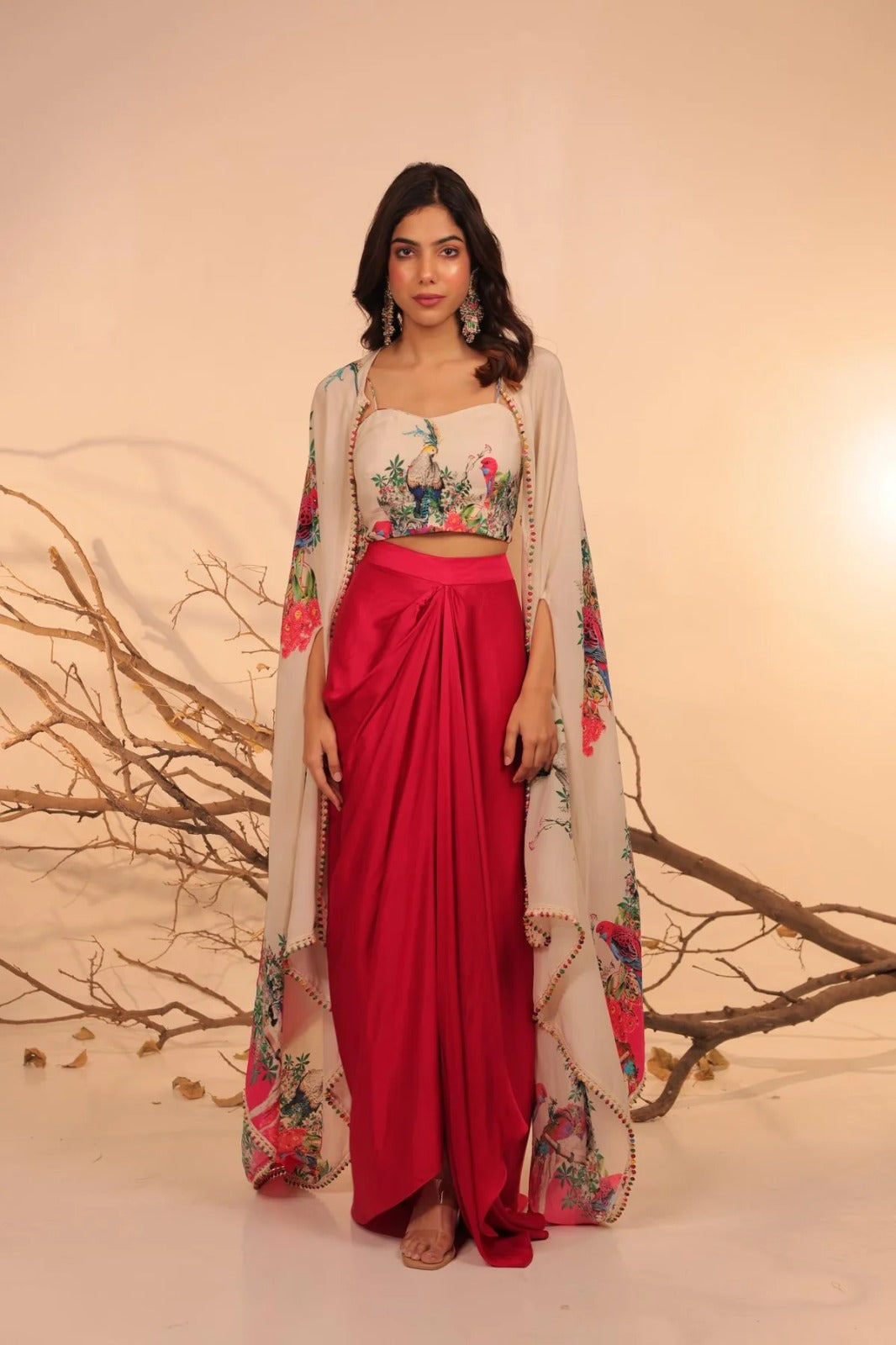 Crimson Bloom Indo-Western Drape Set with Embroidered Cape | |