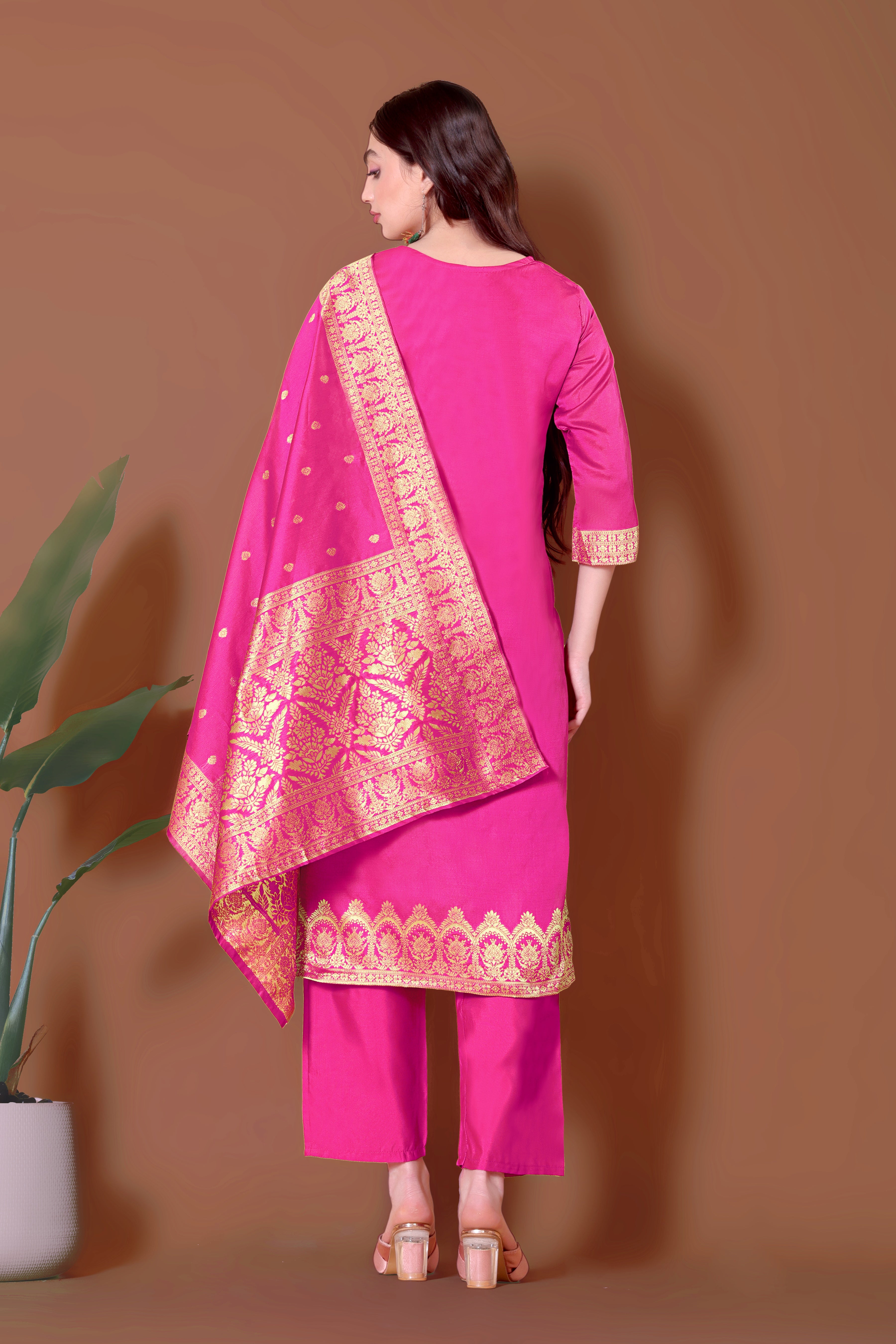 #PinkKurtiSet #JacquardKurtiMalaysia #IndianWearMalaysia #KurtiSetWithDupatta #ReadyToWearEthnic #AditiKurtiSet #ReadymadeSuitMalaysia #DesiStyleMalaysia #TraditionalWear #PunjabiSuitMalaysia #PolySilkBottom #FestiveWearMalaysia
