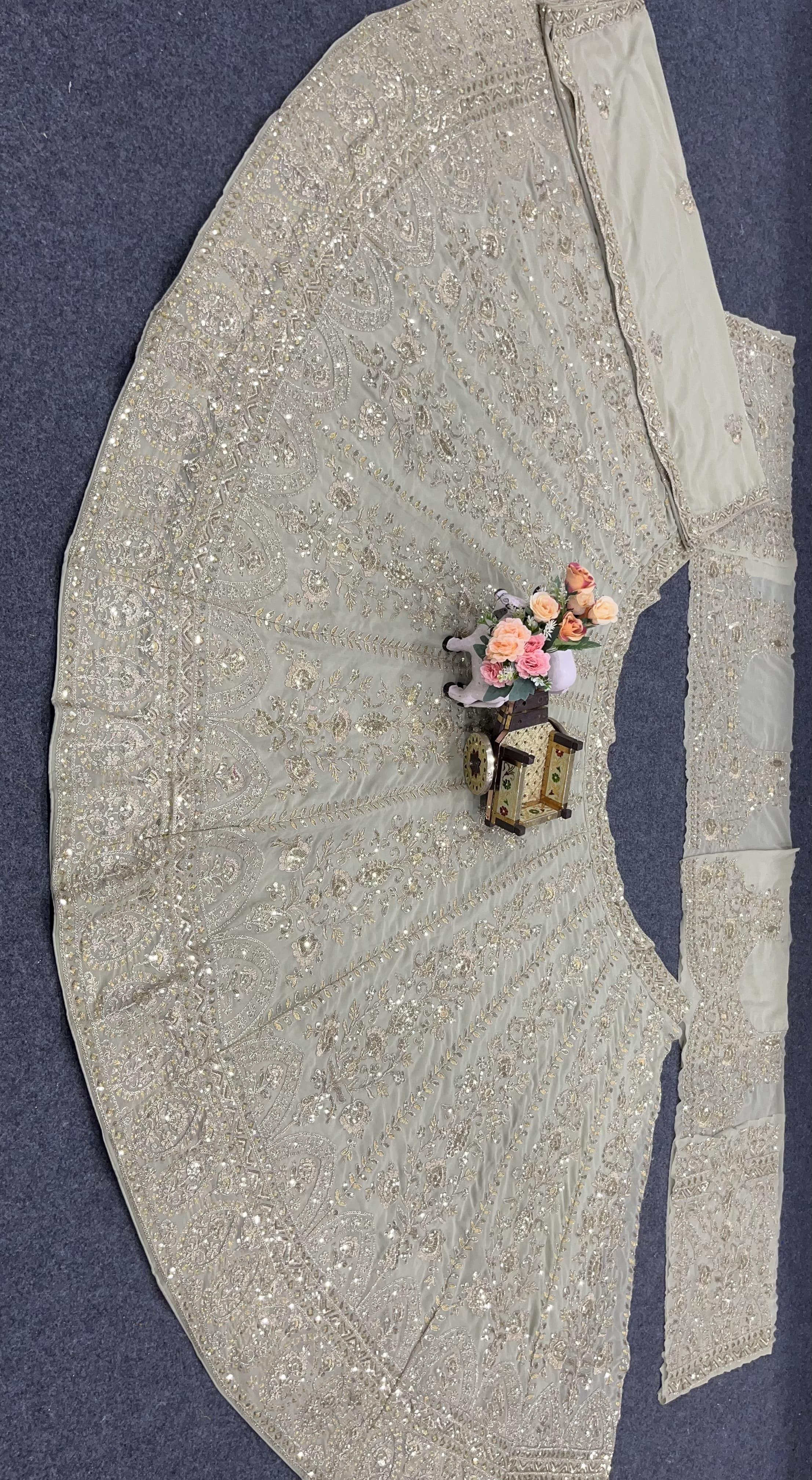 Elevate your ethnic wardrobe with our latest collection of lehenga choli sets for women! Crafted from premium quality faux georgette fabric, each piece features coding sequins work for a touch of elegance. The 4 meter flared lehenga is semi-stitched and can fit up to size 44, with a length of 42 inches. The matching blouse comes with a 1 meter unstitched design, while the dupatta adds the finishing touch with coding sequins work and a length of 2.3 meters. Make a statement at any event with these stunning new lehenga choli designs, perfect for weddings and special occasions.
