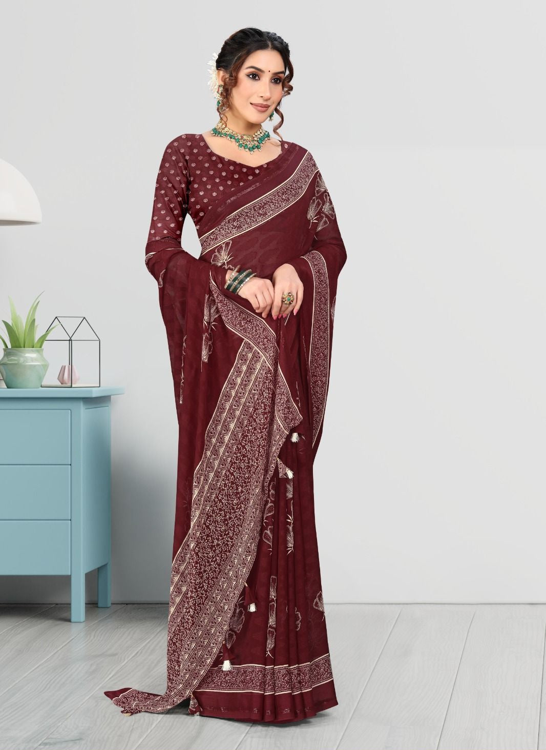 Expertly crafted for Indian women, this Georgette Jacquard Butta Woven Saree offers versatile wear for a variety of occasions. The 5.5 meter saree and 0.8 meter unstitched blouse allow for customization and your own personal style, making it suitable for office wear, business meetings, evening events, parties, weddings, ceremonies, and festivals.
