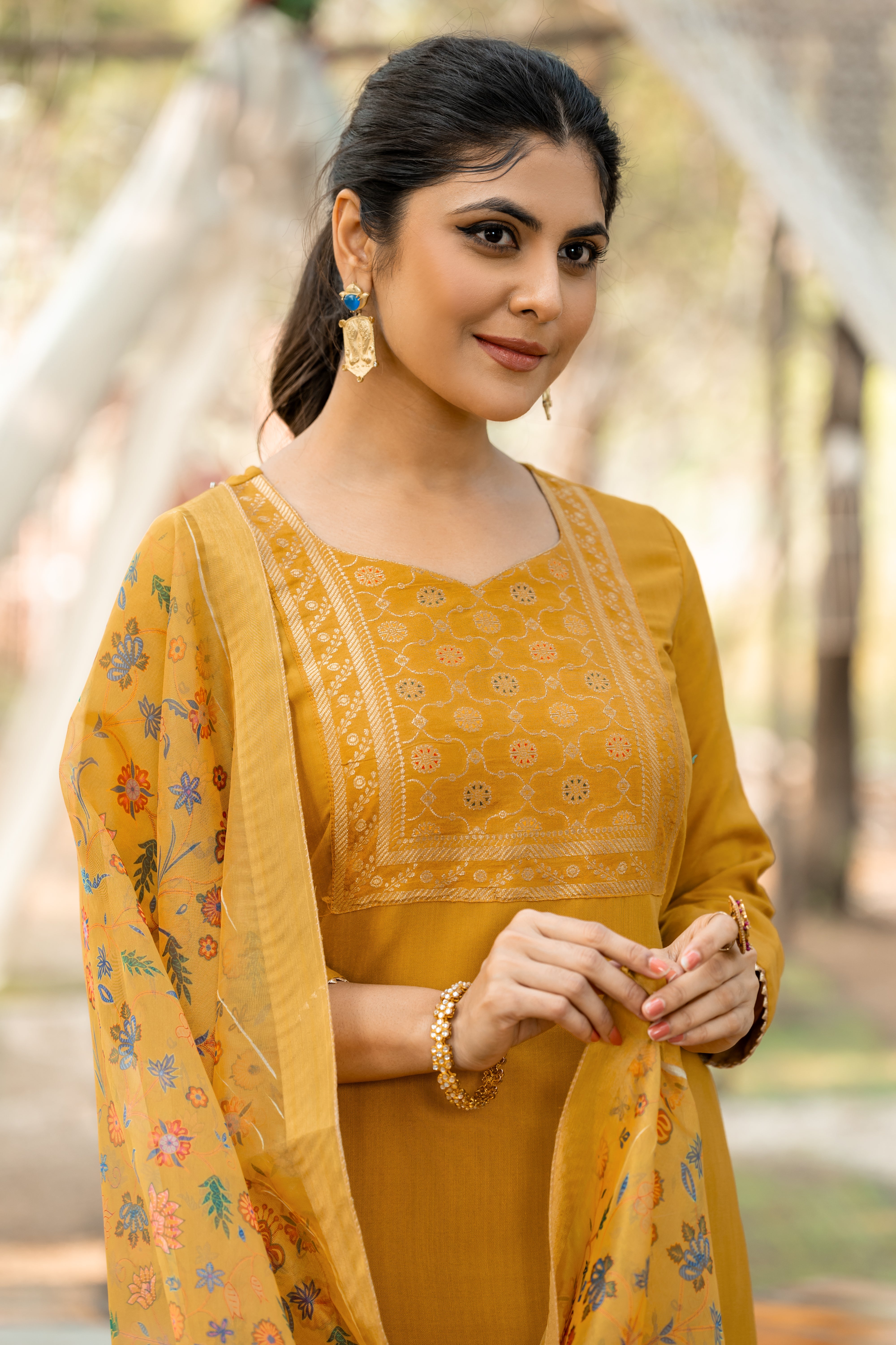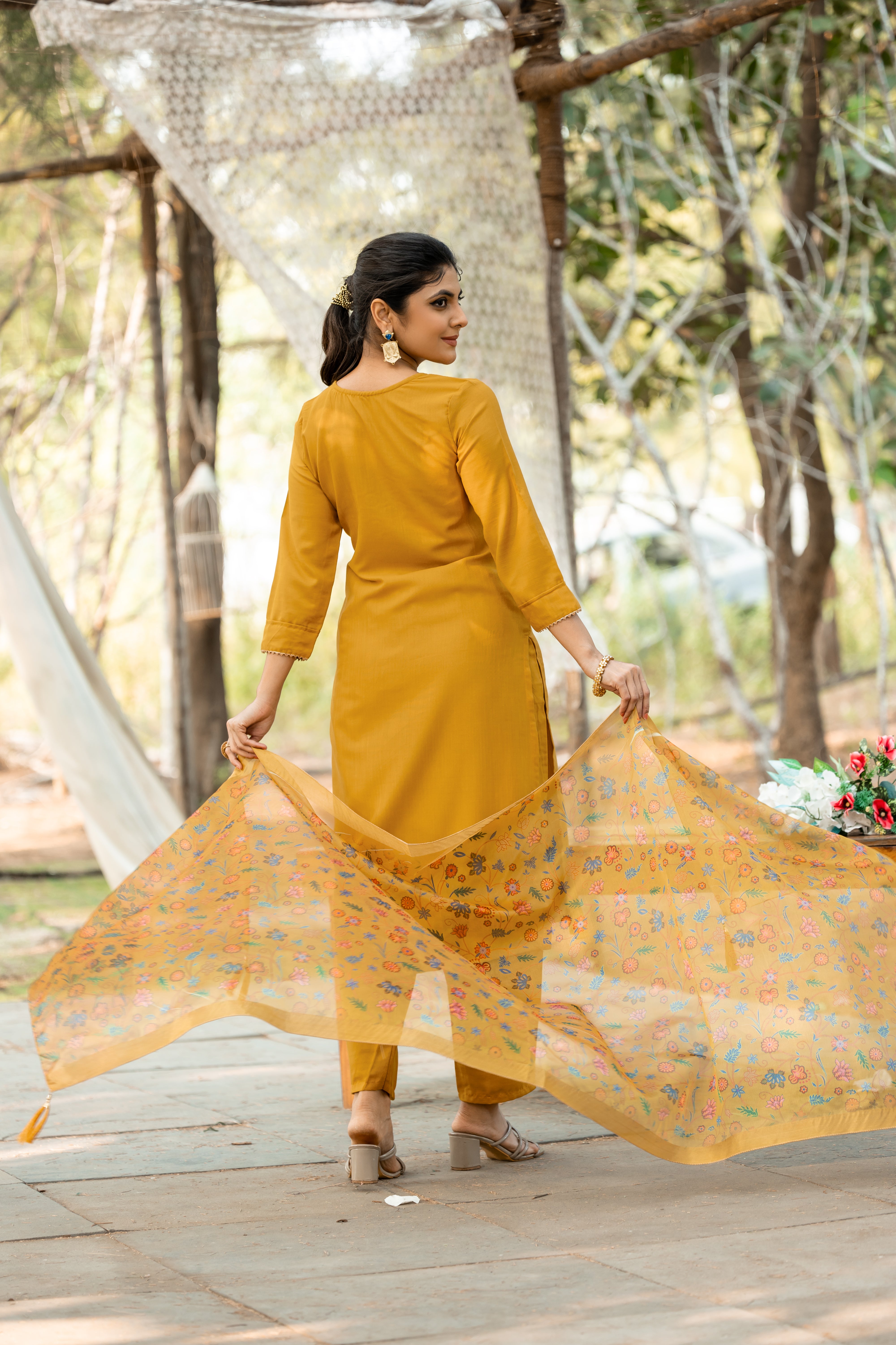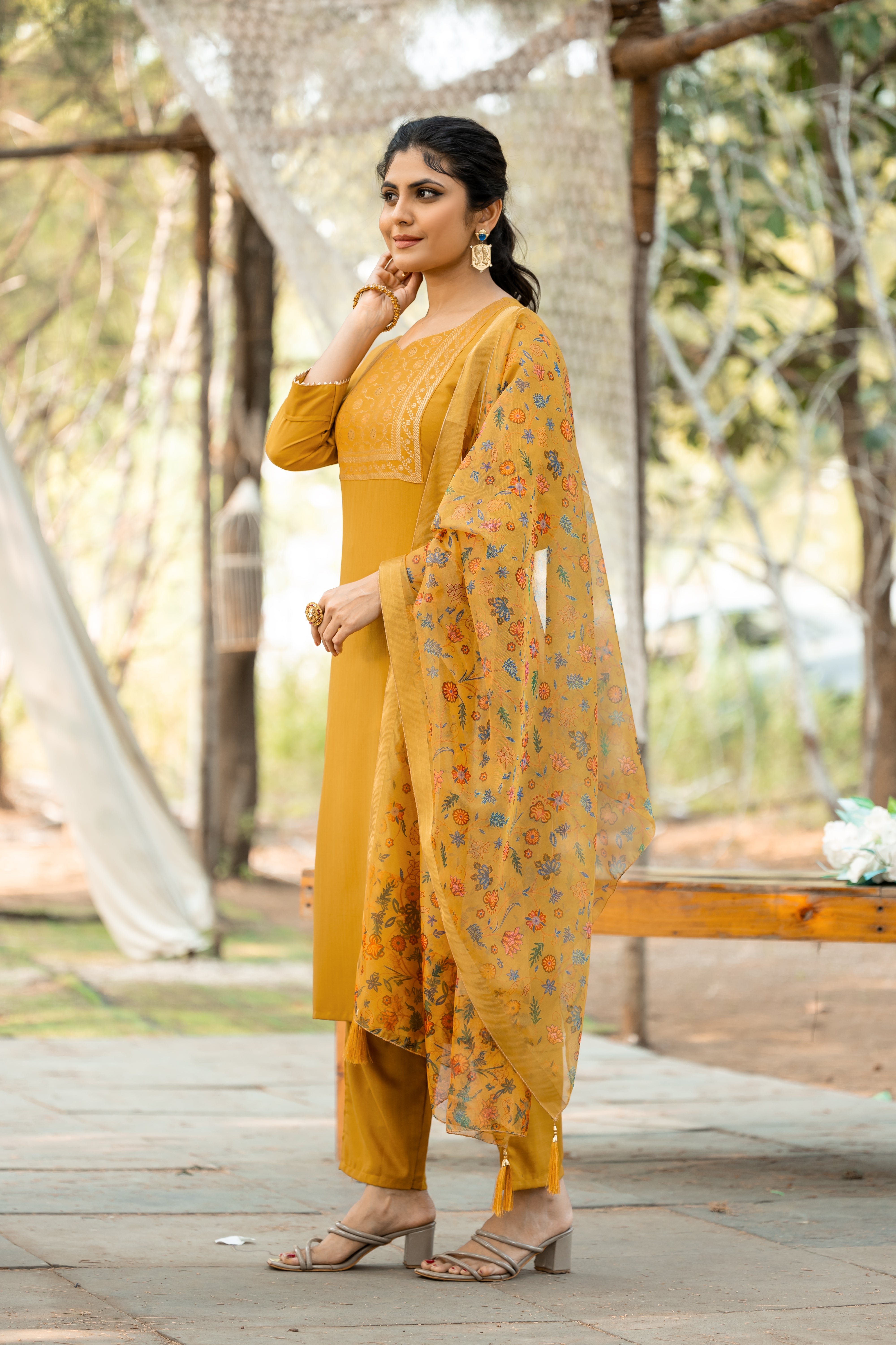 Comes with a digital print organza dupatta for a modern ethnic touch.
