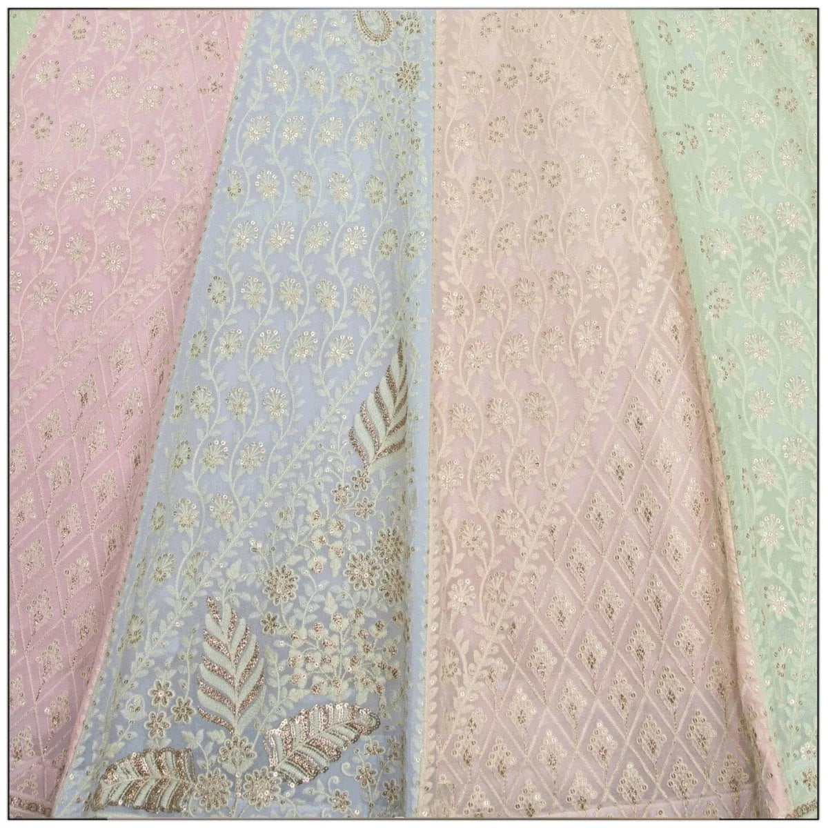 Celebrate every special moment with this Multicolor Sequins Embroidery Wedding Lehenga Choli. Crafted from faux georgette with a soft crepe inner, the lehenga features detailed 3mm sequin, jari, and thread embroidery on a semi-stitched 42" length with 3.5 meters of flair for graceful movement. The unstitched choli fabric is embroidered and paired with inner lining for a perfect custom fit. A 2.25-meter butterfly net dupatta with lace border completes the set, fully stitched for ease. For lasting beauty, dry clean only. Elegant and vibrant, this ensemble ensures you shine at every celebration.