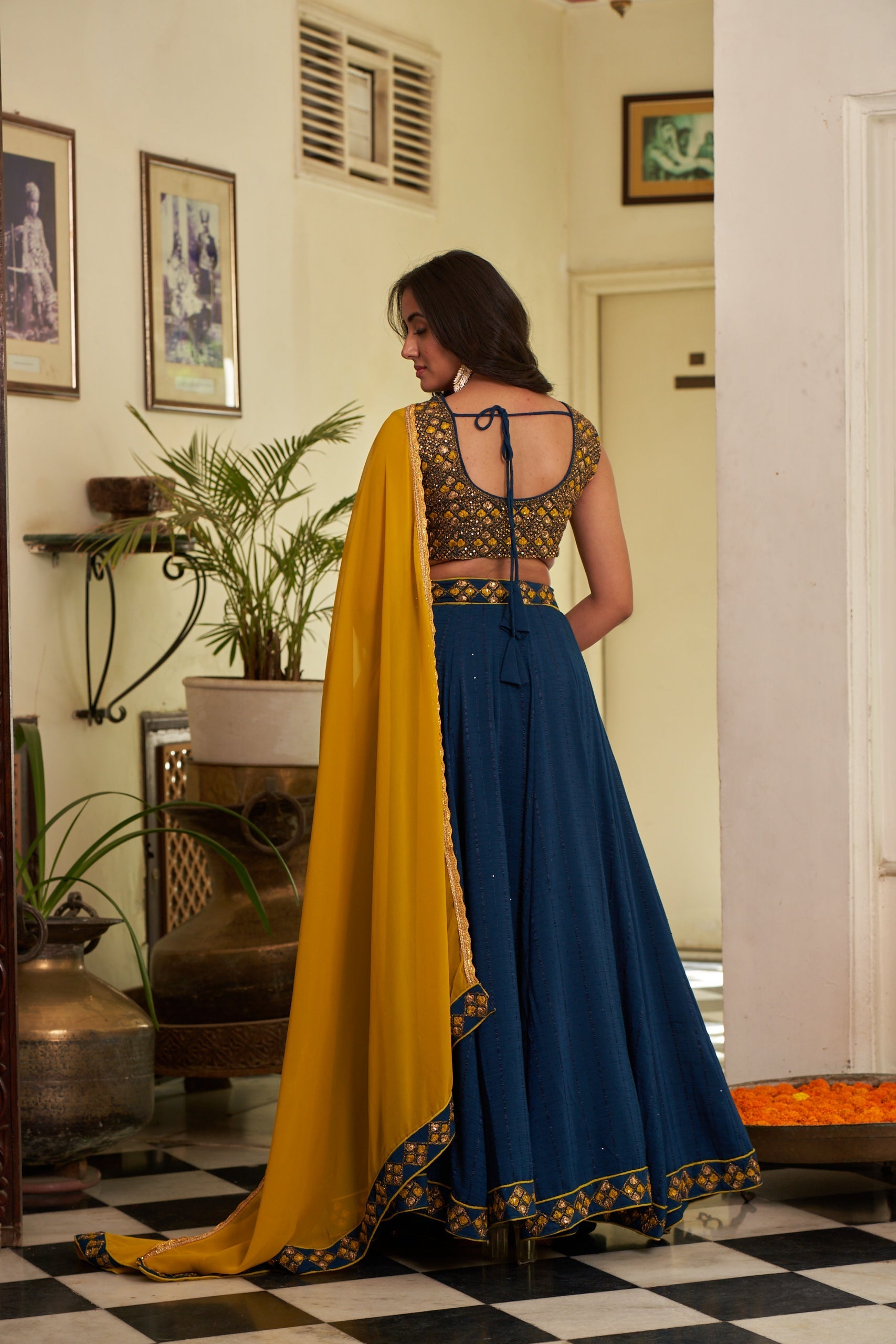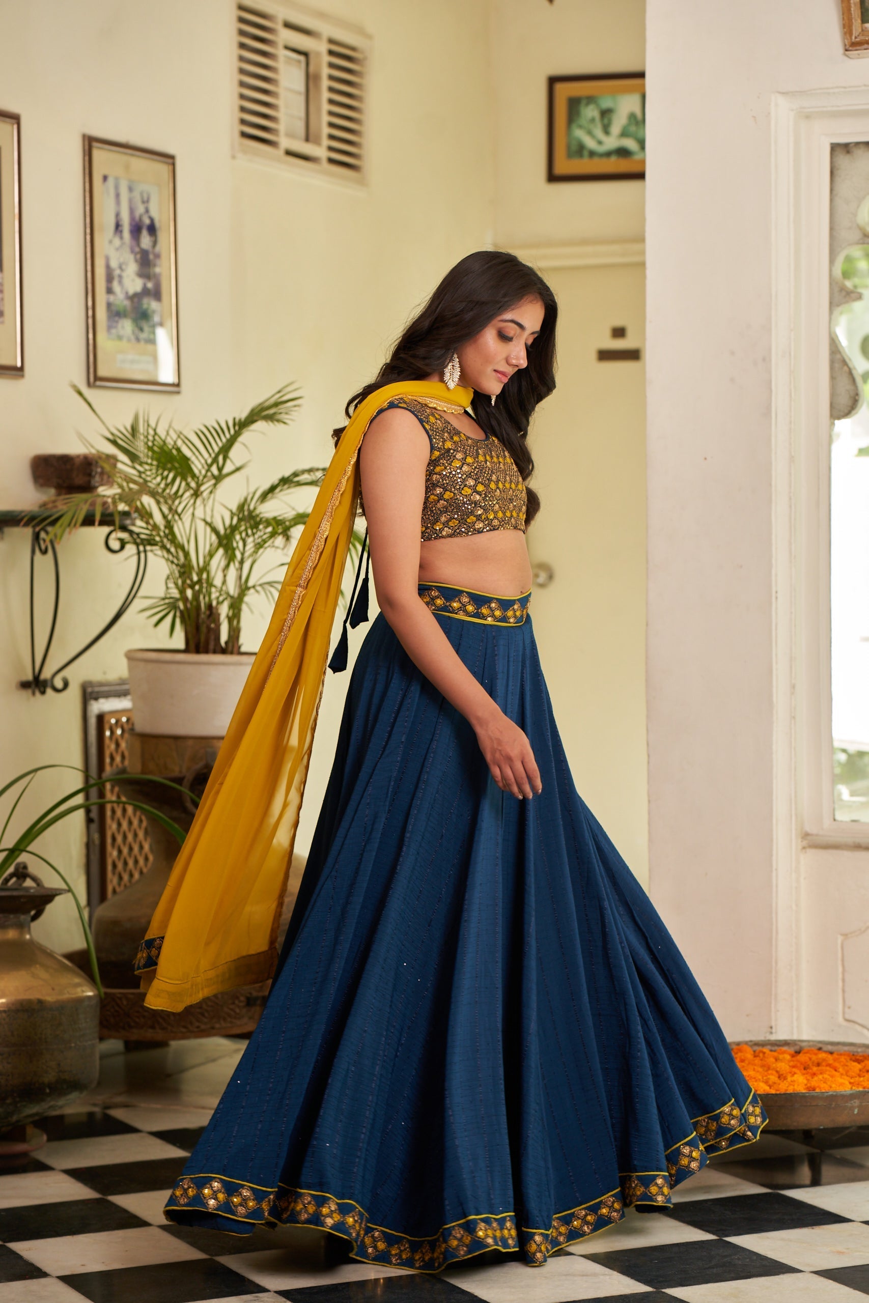 Lehenga : Chanderi Blouse : Chanderi : Inner : Crepe : Dupatta : Georgette : |