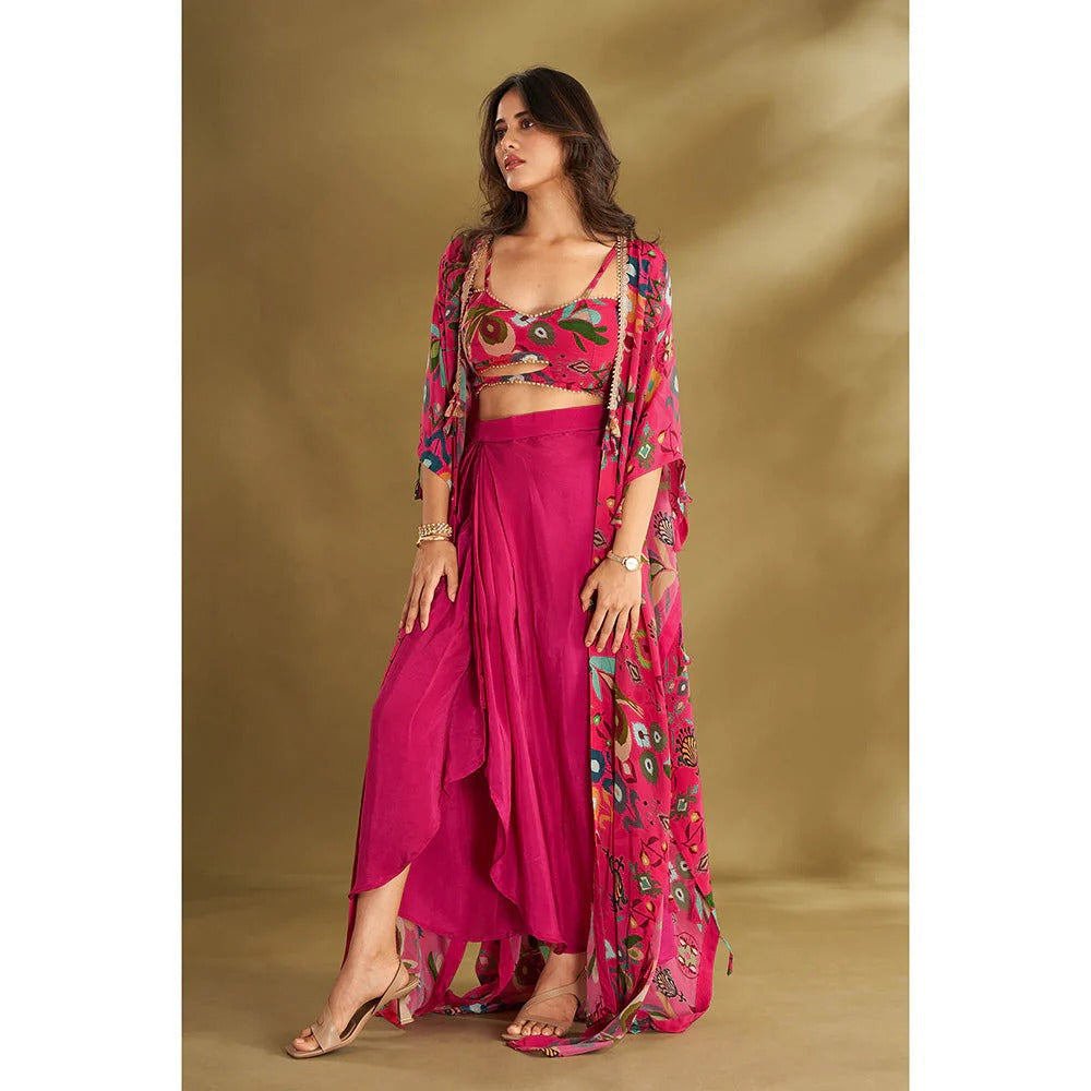 Pink Drape Skirt With Blouse And Jacket (Set of 3) | |