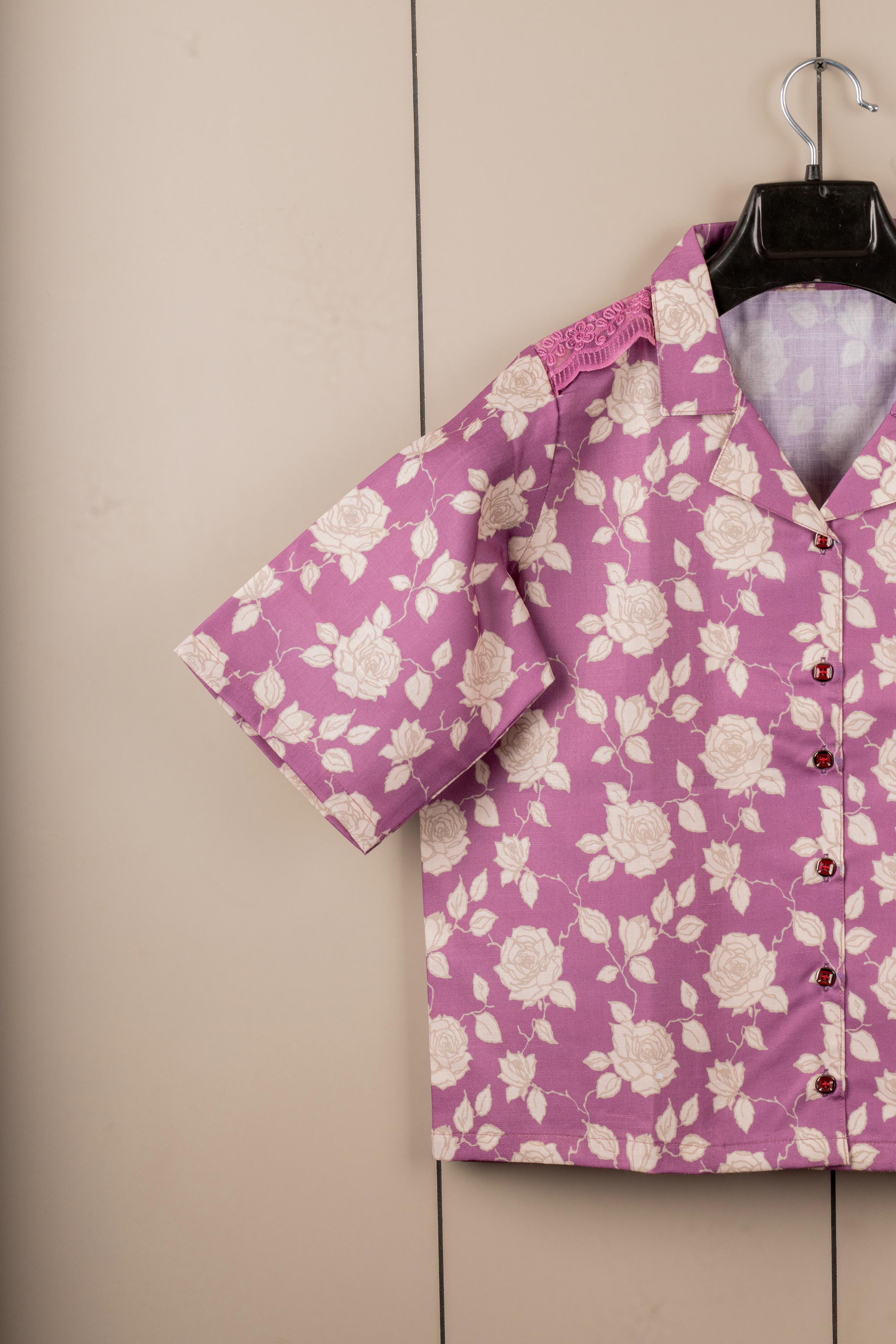 Pink Floral Printed Short-Sleeve Tunic for Women – Cotton Blend Casual Top | Stylish Daily & Office Wear Malaysia 2025