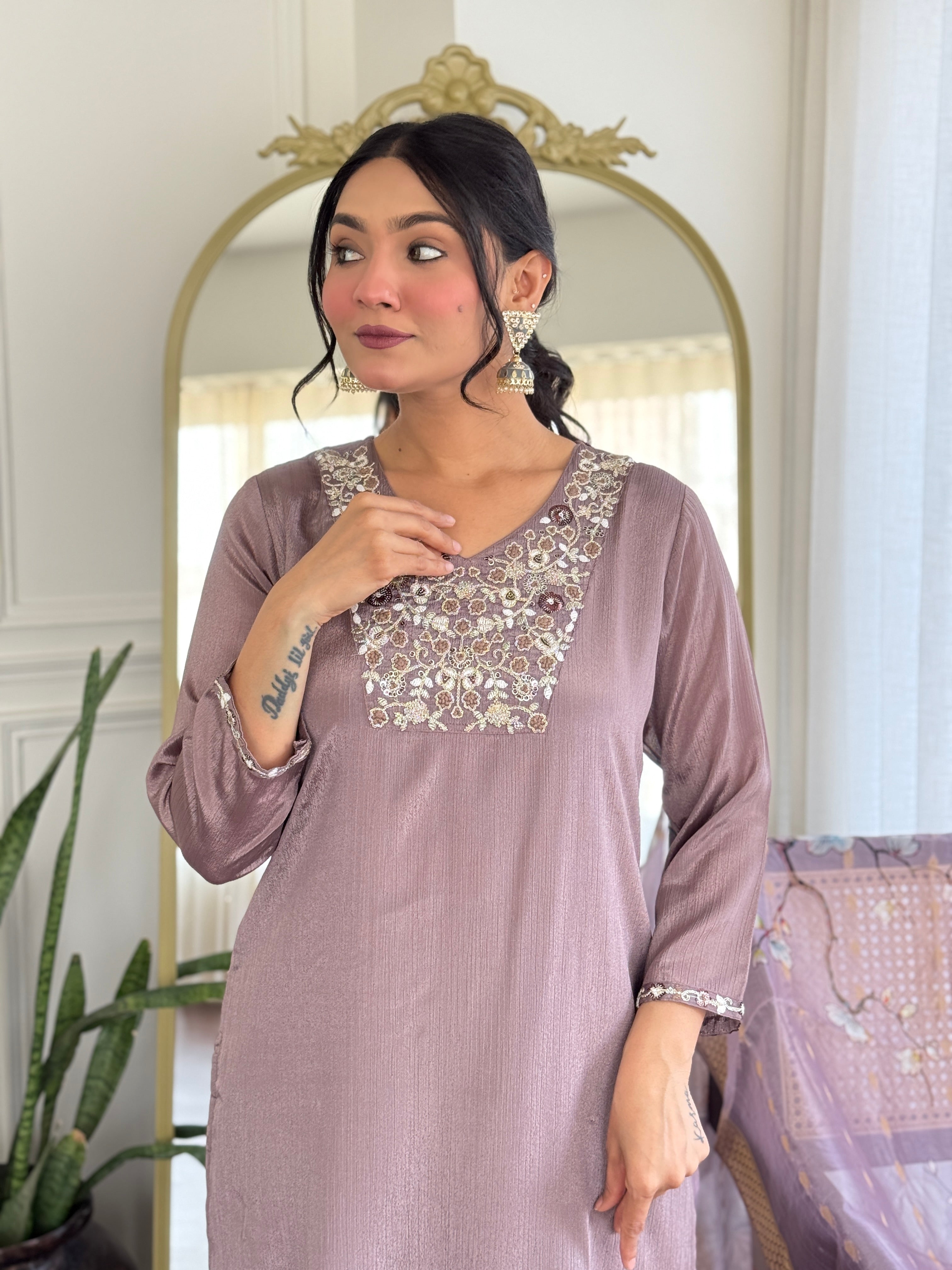 RADHA GREY COLOURED  WOMEN'S VISCOSE CHINNON  KURTA WITH PANT DUPATTA  SET