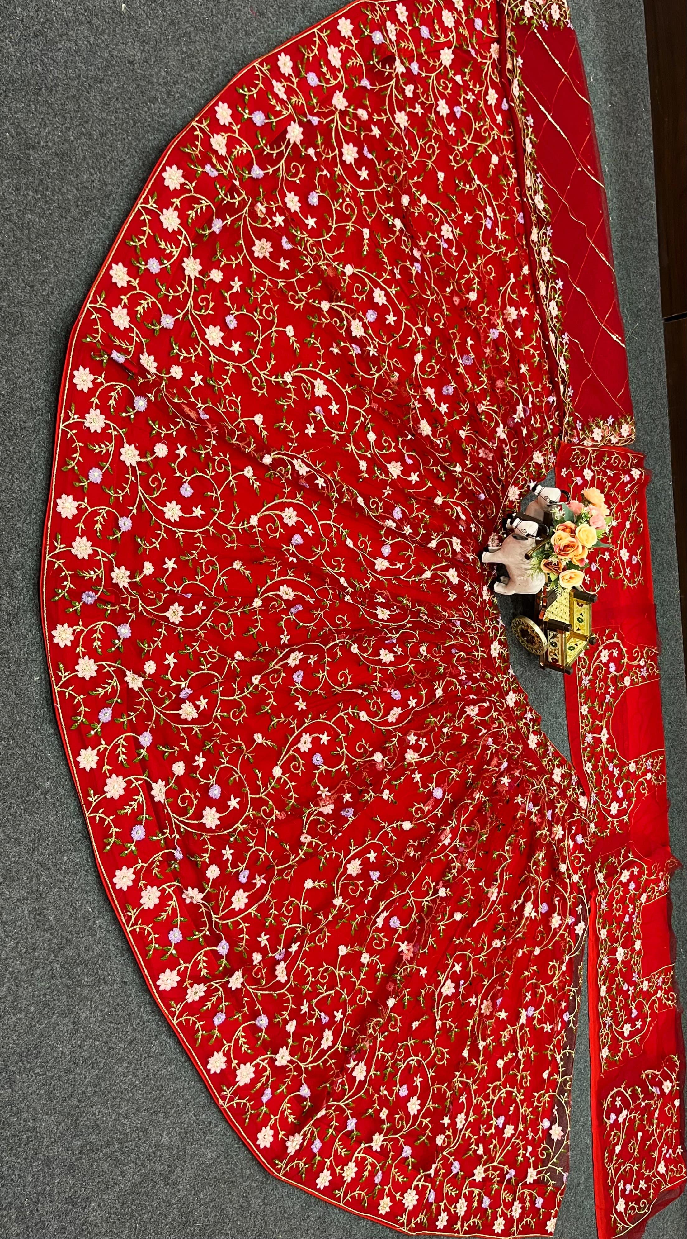 Introducing ..OmVogue..'s latest collection of gorgeous women's lehenga choli! This stunning outfit features a soft net lehenga with intricate embroidery sequins work, along with cancan and canvas patta for added flair. The 4 meter flared lehenga is semi-stitched and can fit up to size 44, with a length of 42 inches. The premium quality butterfly net blouse comes with embroidery sequins work and is 1 meter unstitched, perfect for customization. Complete the look with the premium quality mono net dupatta, featuring embroidery sequins work and a size of 2.3 meters. This lightweight outfit weighs under 1.5 kg, making it perfect for weddings and special occasions. Get your hands on this new lehenga choli design for a show-stopping look!