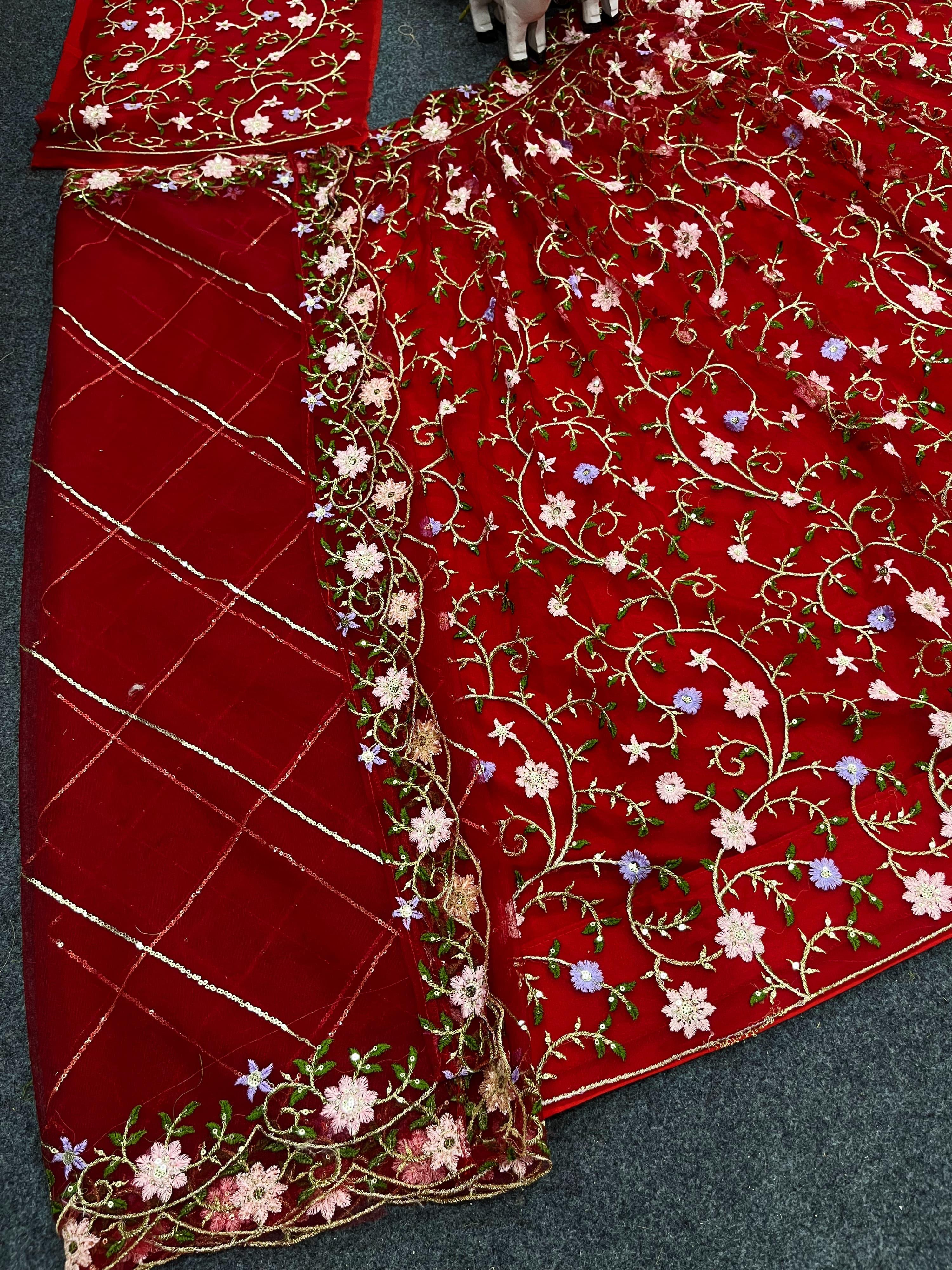 Upgrade your ethnic wardrobe with the latest collection of lehenga for women from ..OmVogue..! This exquisite ensemble features a soft net lehenga with beautiful embroidery sequins work, cancan, and canvas pata for a touch of glamour. The 4 meter flared lehenga is semi-stitched and can fit up to size 44, with a length of 42 inches for a flattering fit. The premium quality butterfly net blouse is adorned with intricate embroidery sequins work and comes as a 1 meter unstitched piece for customization. Complete the look with the premium quality mono net dupatta, featuring embroidery sequins work and a size of 2.3 meters. Weighing under 1.5 kg, this outfit is perfect for weddings and special occasions. Don't miss out on this new women lehenga choli design and steal the spotlight at your next event!