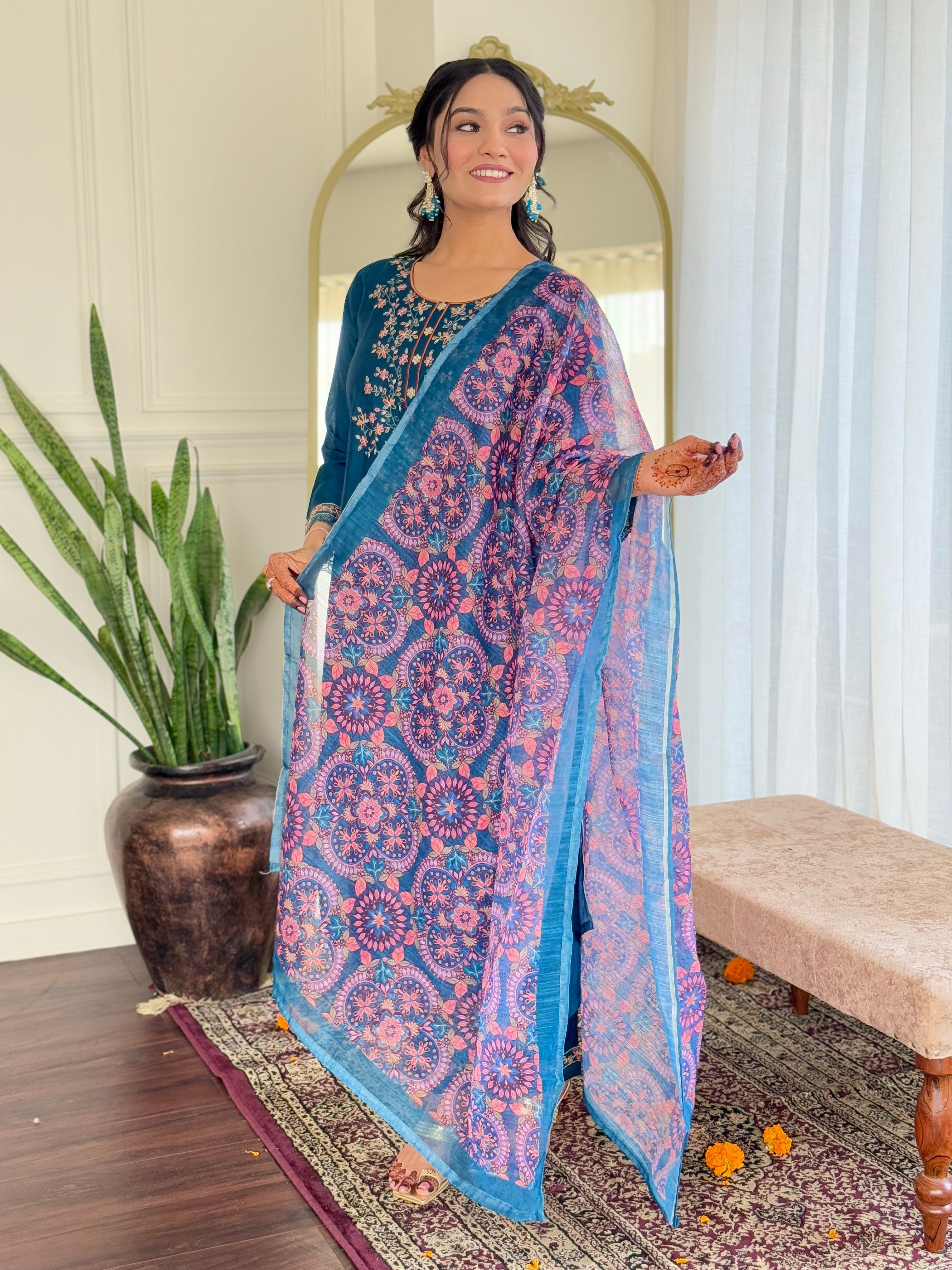 BOTTOM FABRIC : CHANDERI SILK