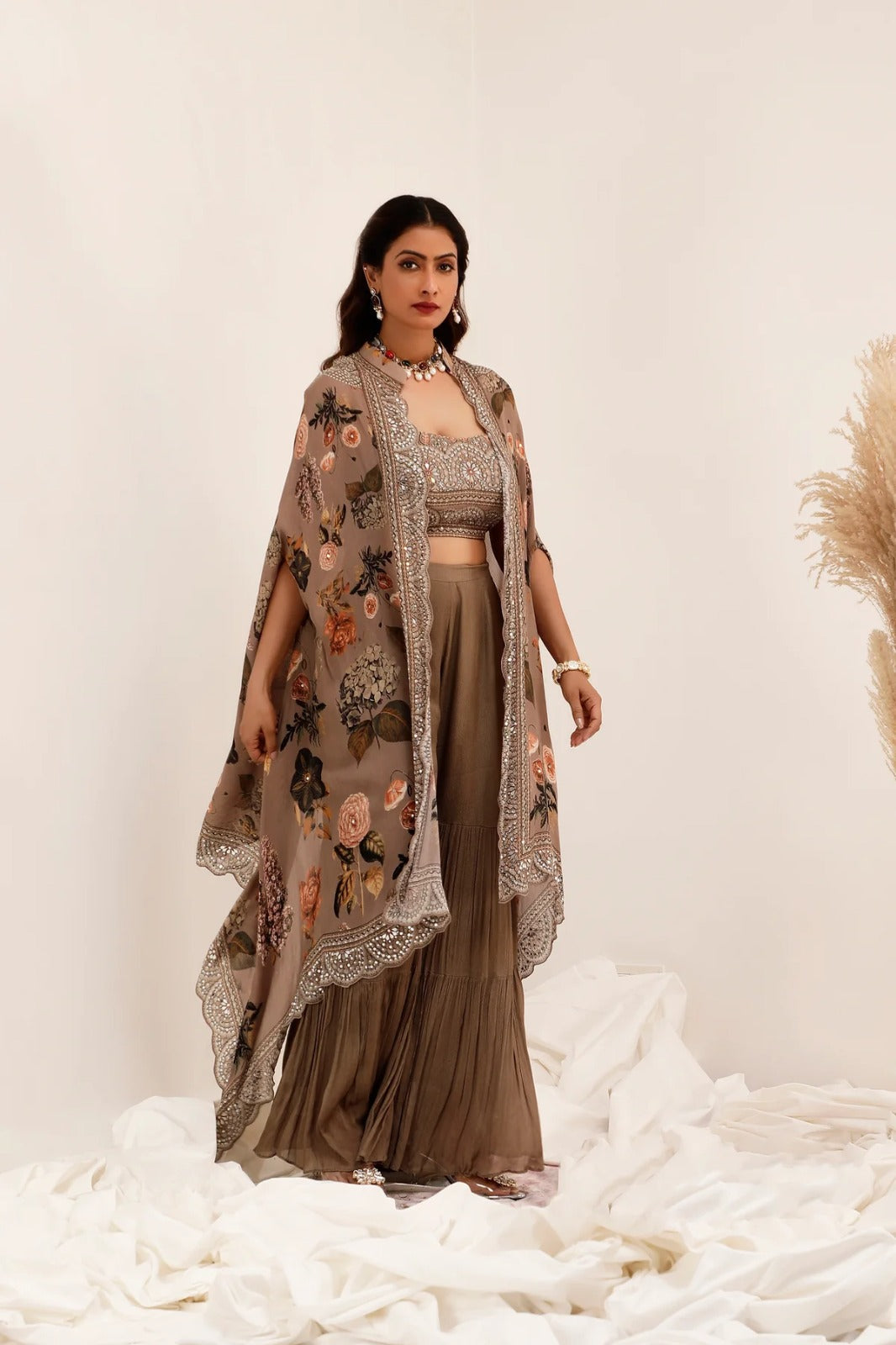 Rustic Rose Designer Cape & Flared Palazzo Set | |