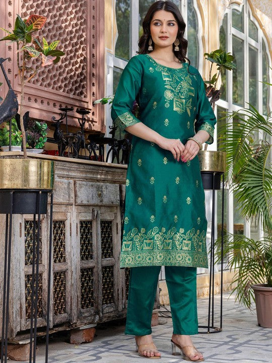 Step into timeless elegance with the SANISA Women’s Ethnic Kurta Set, designed with woven ethnic motifs in a premium silk blend fabric. Perfect for festive occasions, weddings, parties, and cultural events in Malaysia, this 3-piece set includes a stylish straight kurta, comfortable trousers, and a matching dupatta. The rich green tone with exquisite woven design makes it a must-have ethnic outfit for women who love traditional charm with modern comfort.