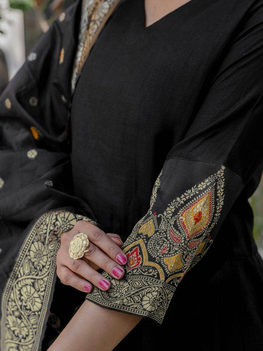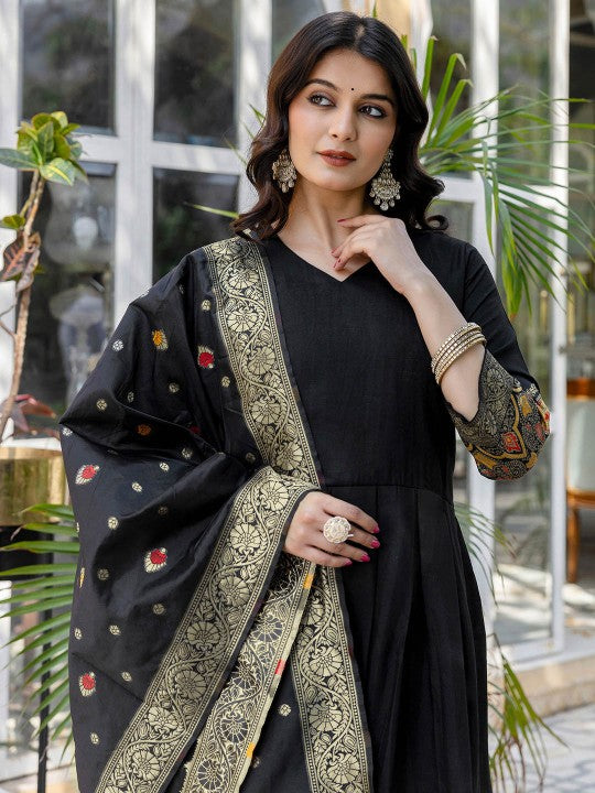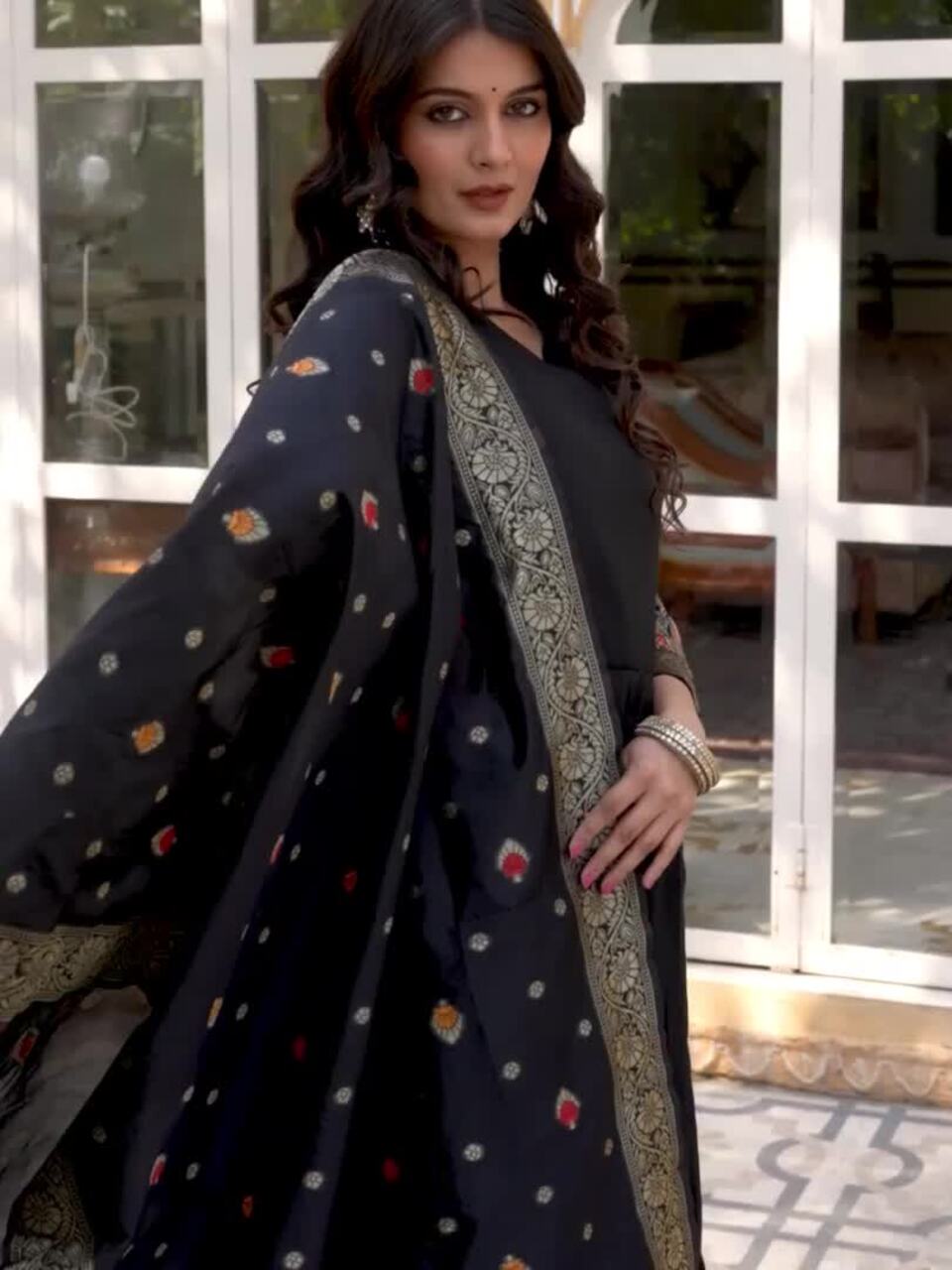 ✨ Product Name: SHAILY Women’s Ethnic Motif Woven Design Straight Kurta with Pants & Dupatta
