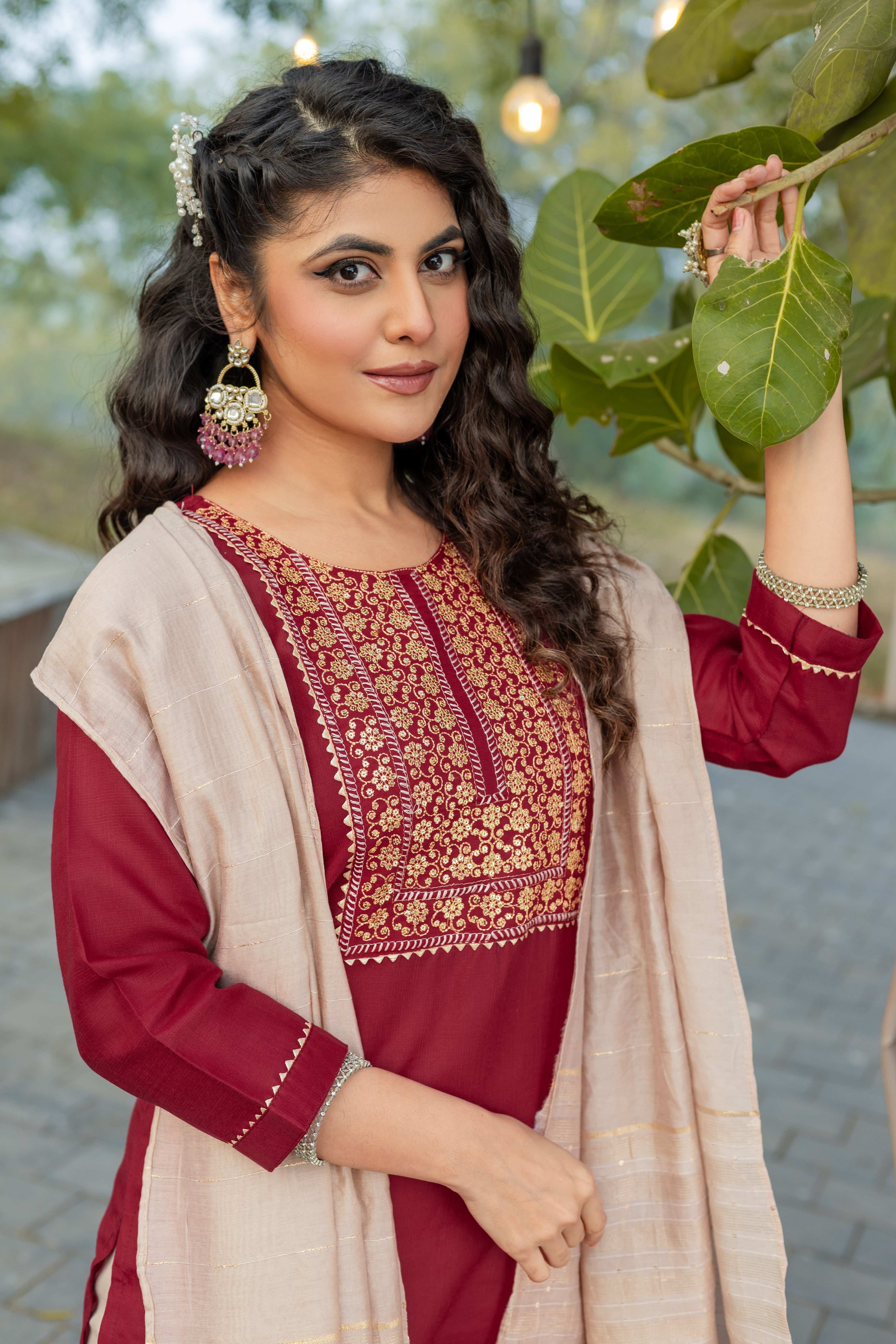 #SK19KurtaSet #RedKurtaSet #CottonBlendKurta #EmbroideredKurta #ChanderyDupatta #FestiveWearMalaysia #KurtaSetMalaysia #PartyWearKurta #EthnicWearMalaysia #IndianOutfitMalaysia