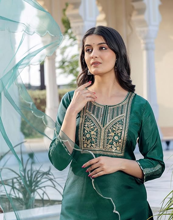 Color: Dark Green (Kurta, Pant & Dupatta)