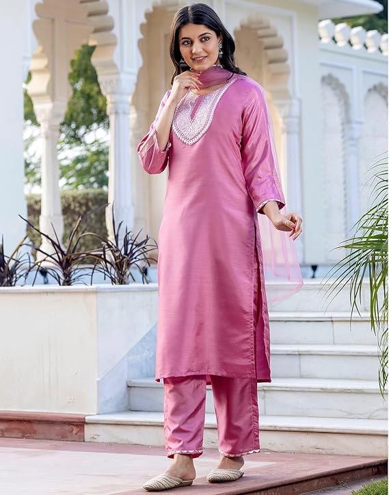 Product Name: SKYLEE Women’s Silk Blend Embroidered Kurta Set with Pant & Dupatta