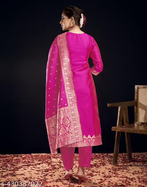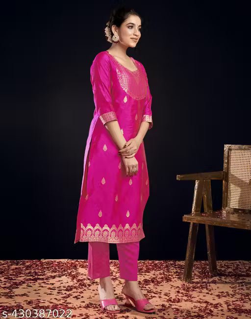 Product Name : Women’s Silk Blend Gold & Pink Dyed Kurta Pants with Dupatta Set