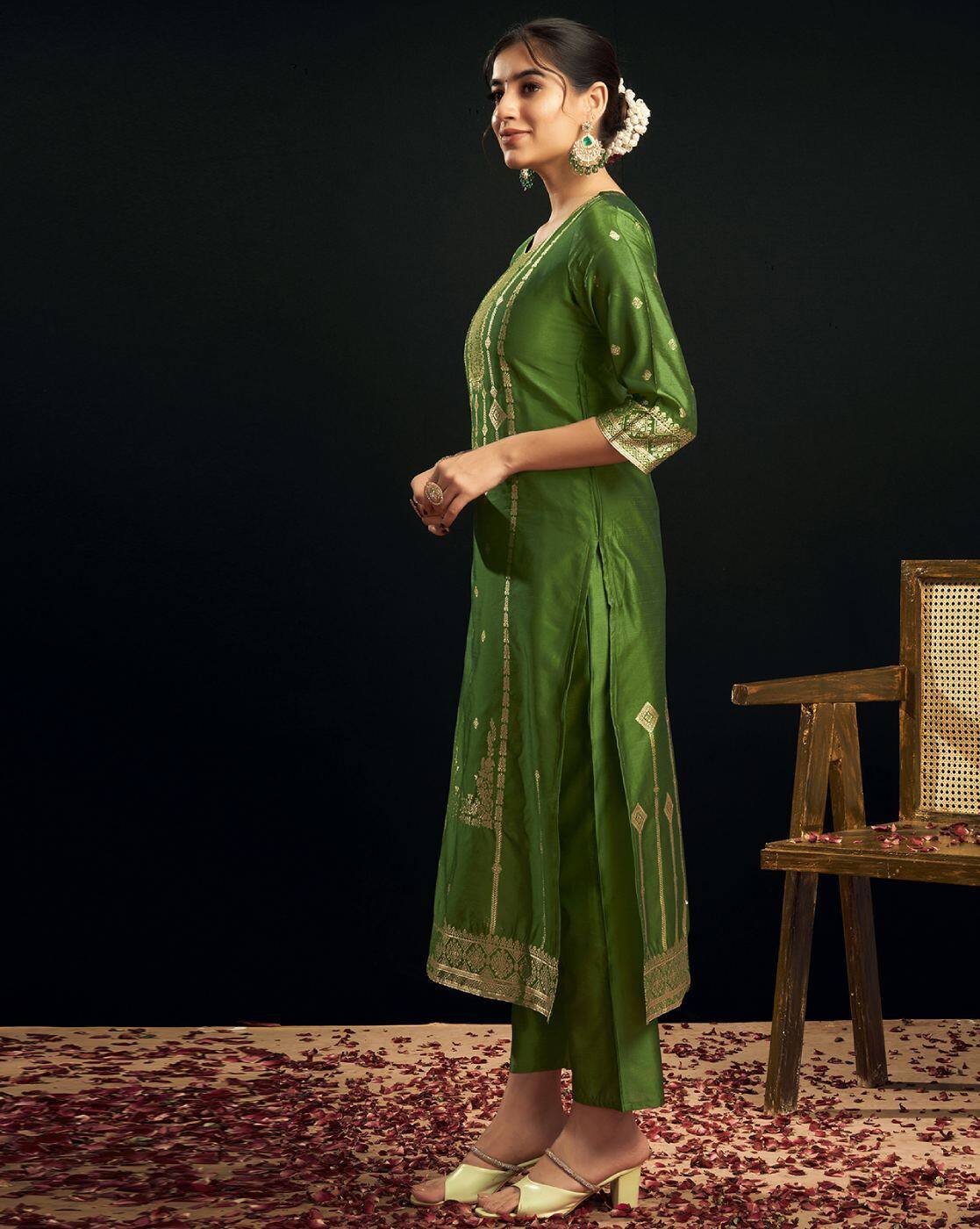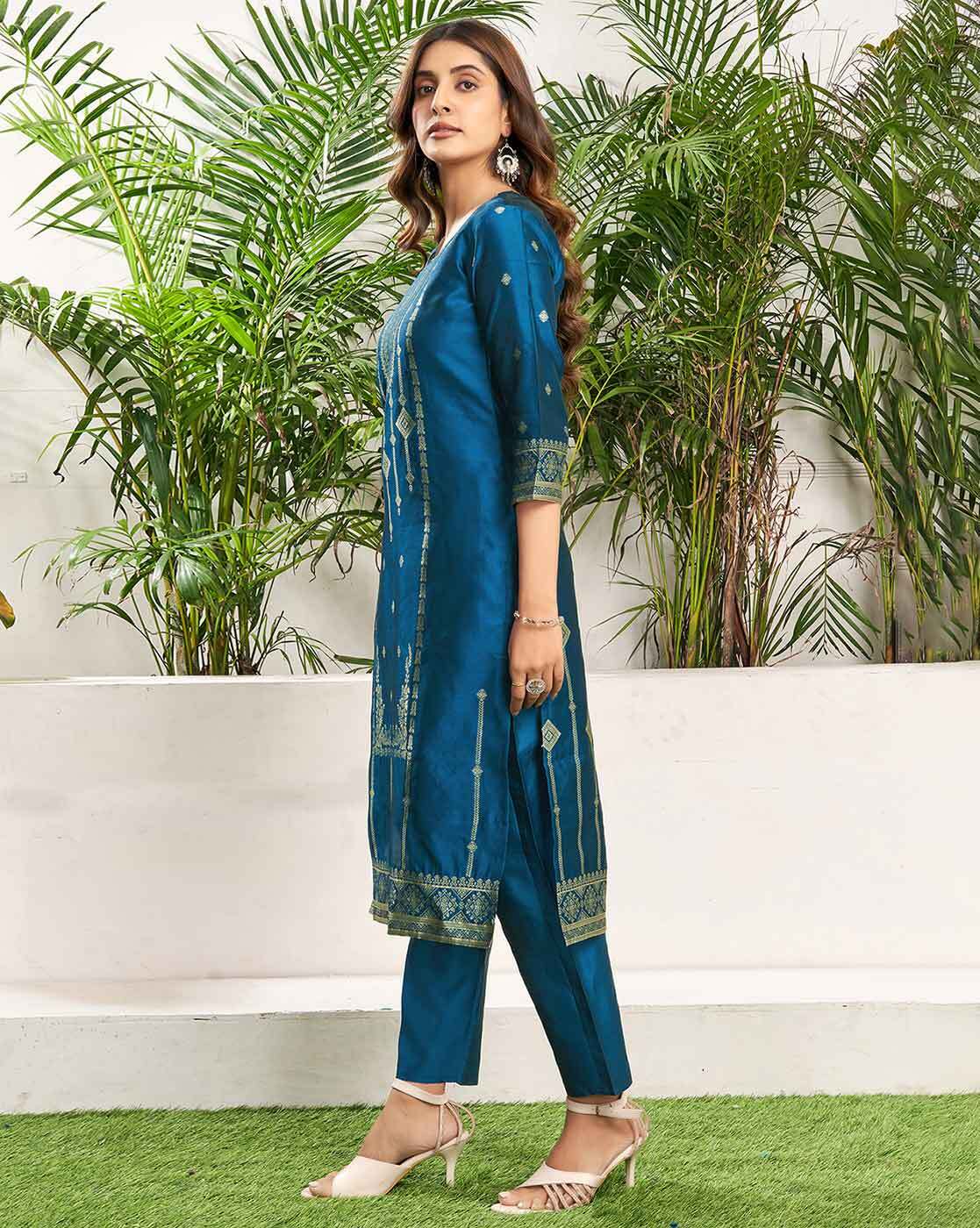 • Style: Woven Straight Kurta with Pant & Dupatta