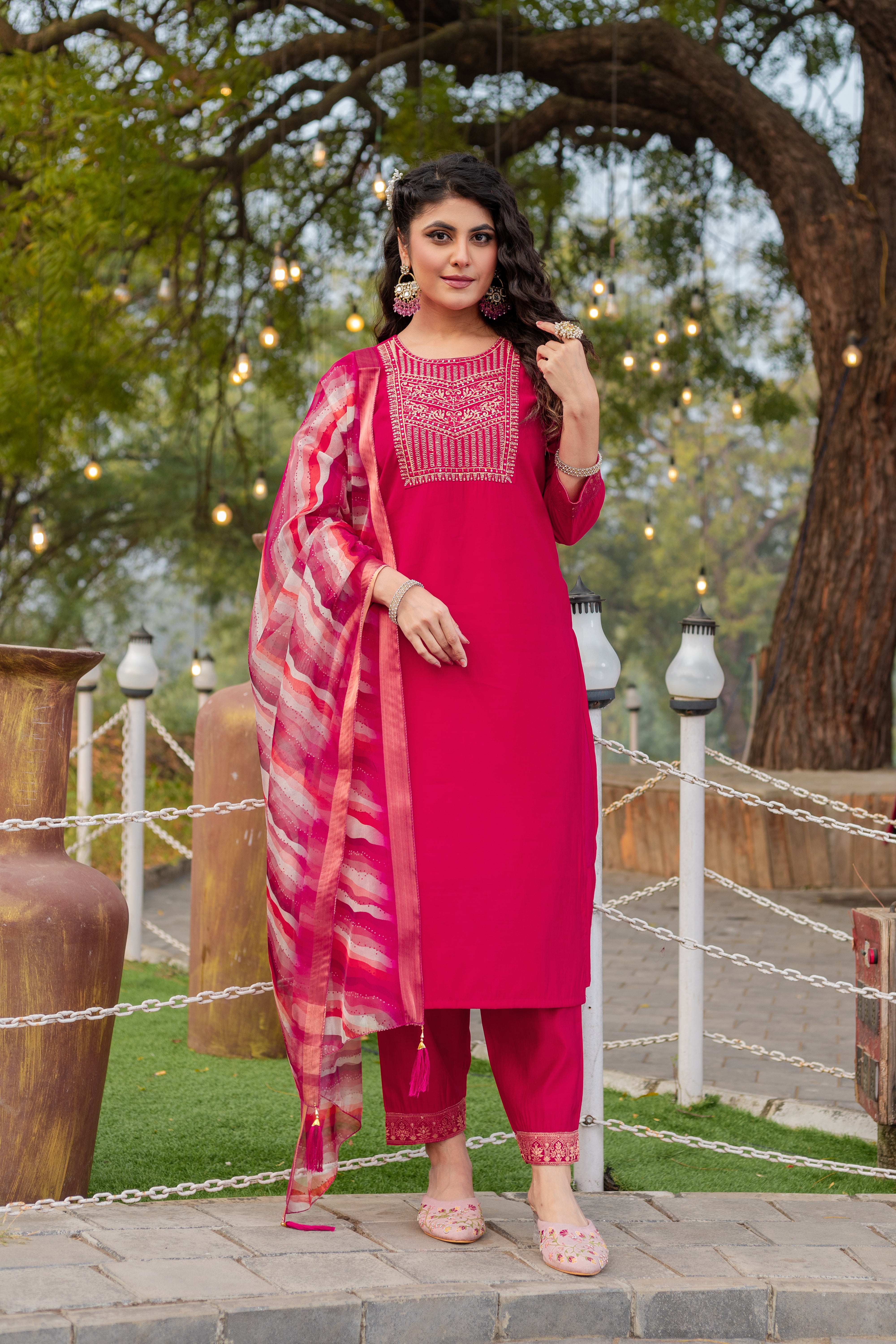 Complete 3-piece ready-to-wear set (Kurta + Bottom + Dupatta).