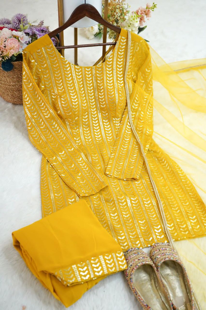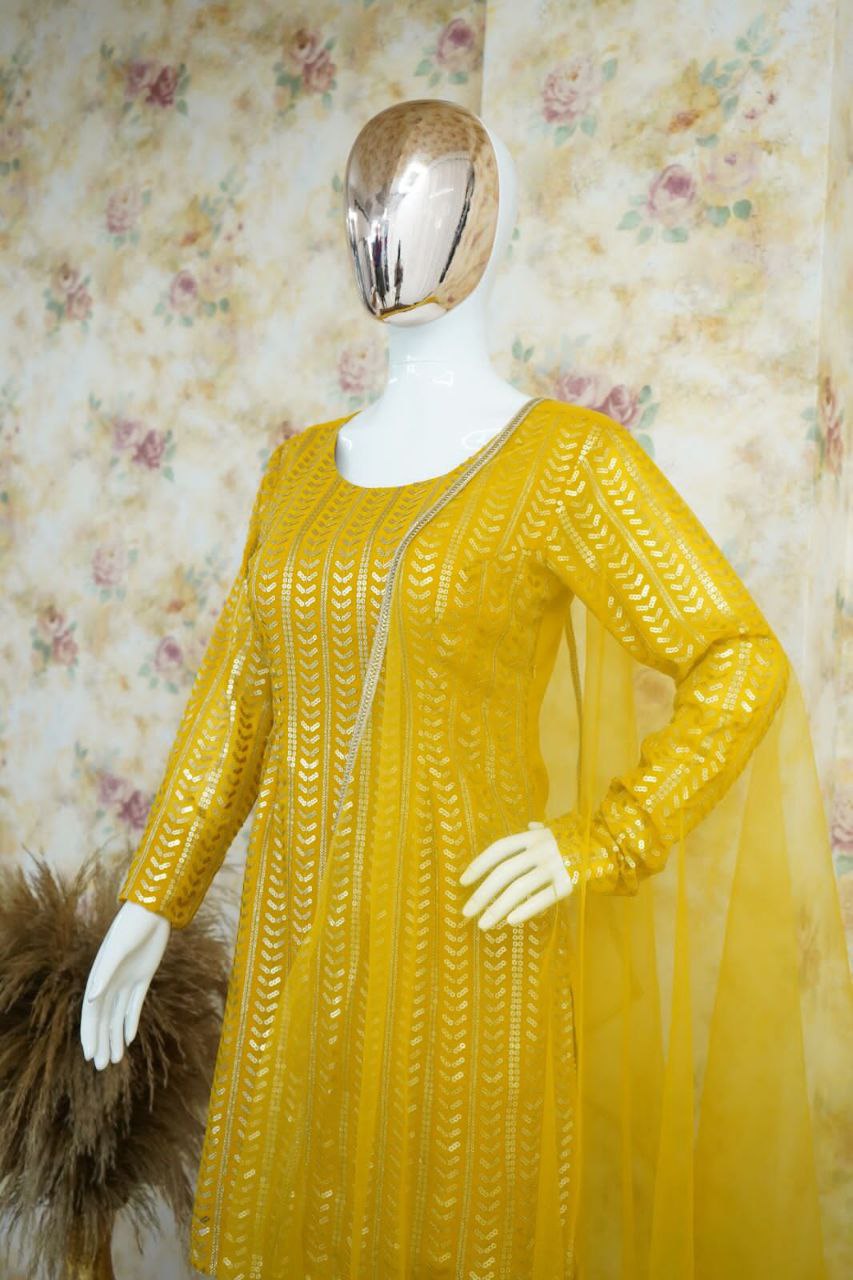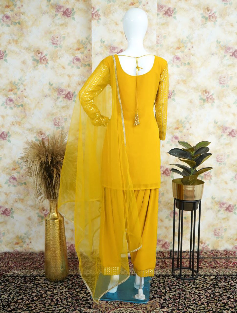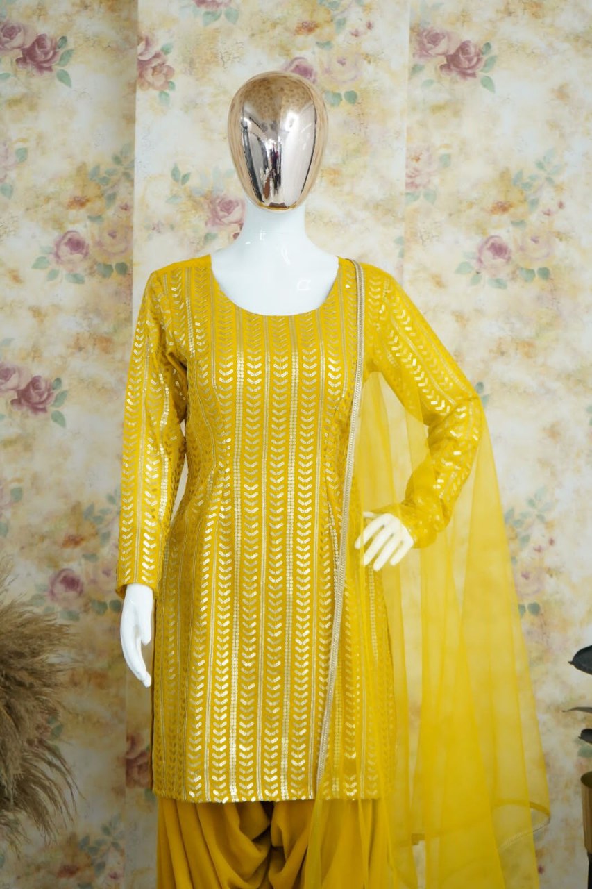 β¨ Product Name: Premium Georgette Embroidery Sequins Work Patiyala Set β Ready to Wear