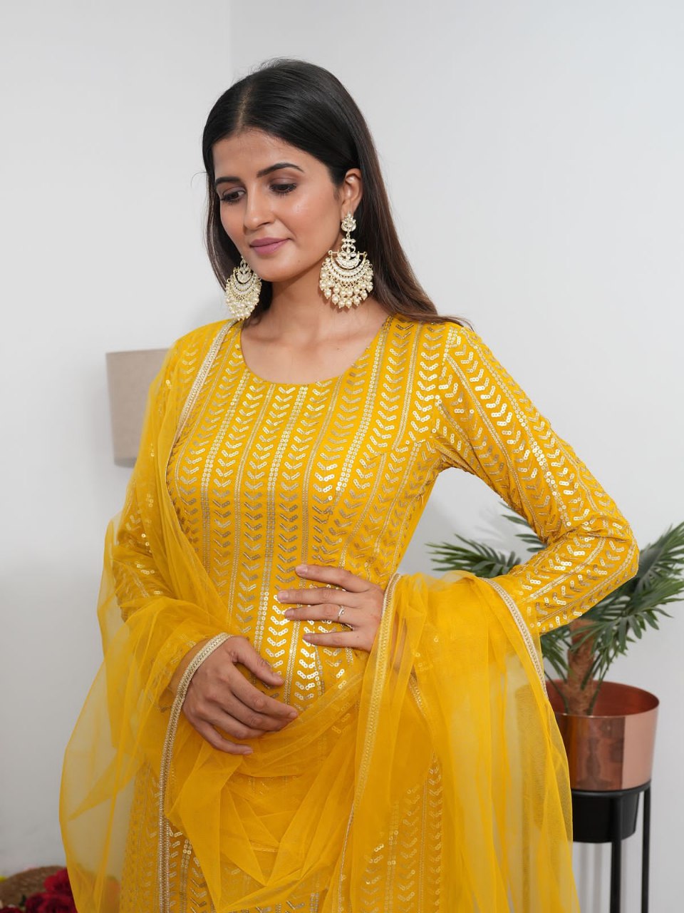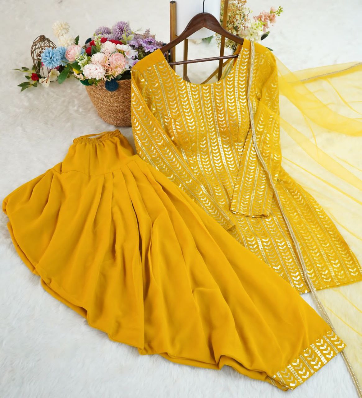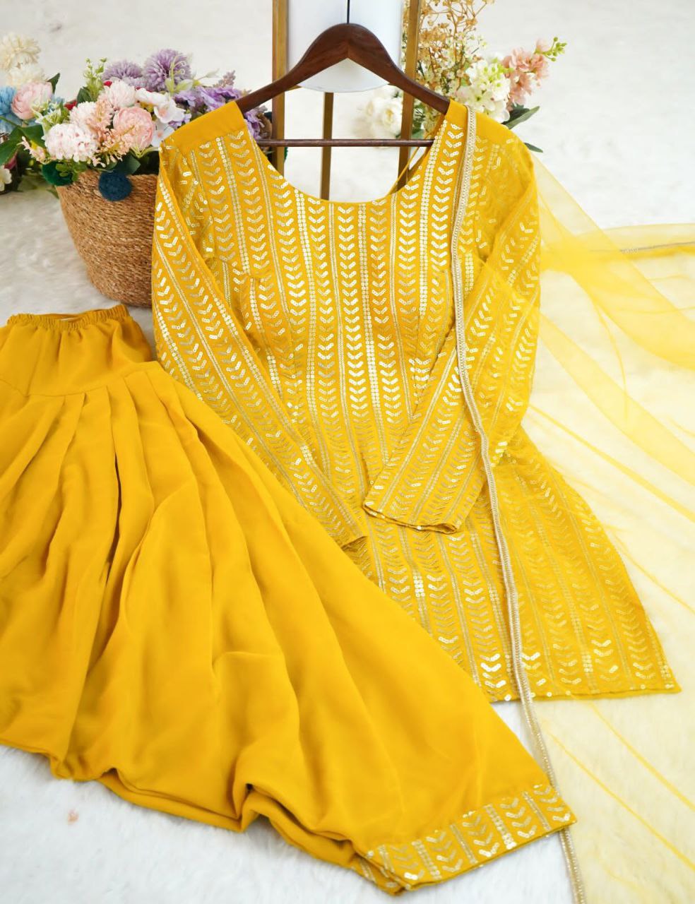 β¨ Product Name: Premium Georgette Embroidery Sequins Work Patiyala Set β Ready to Wear