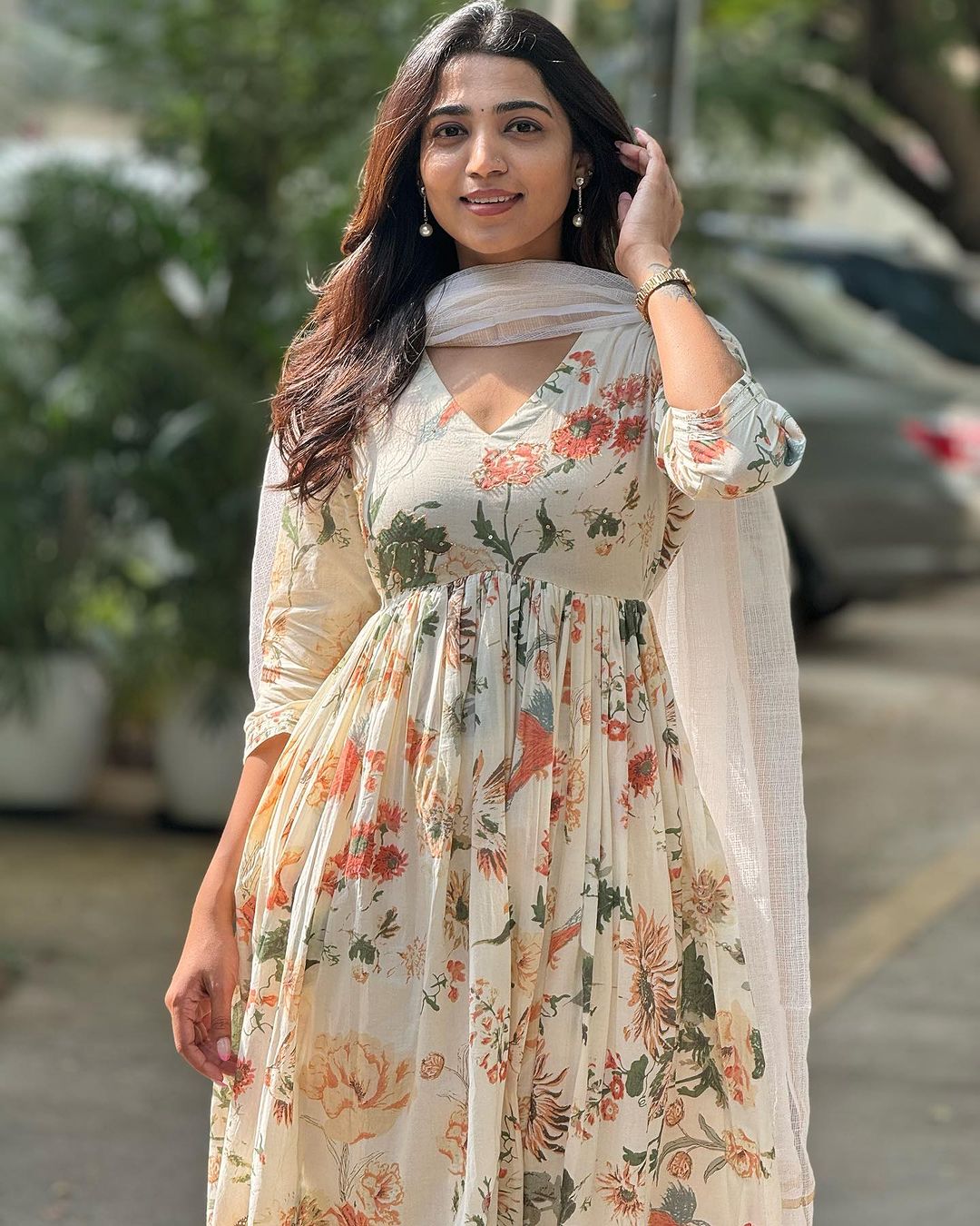 V-Neck White Cotton Anarkali Set with Chanderi Dupatta. This Kurti Is A Must Have In Every Woman's Wardrobe. |