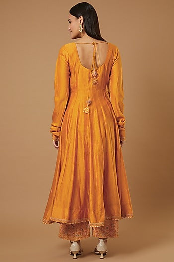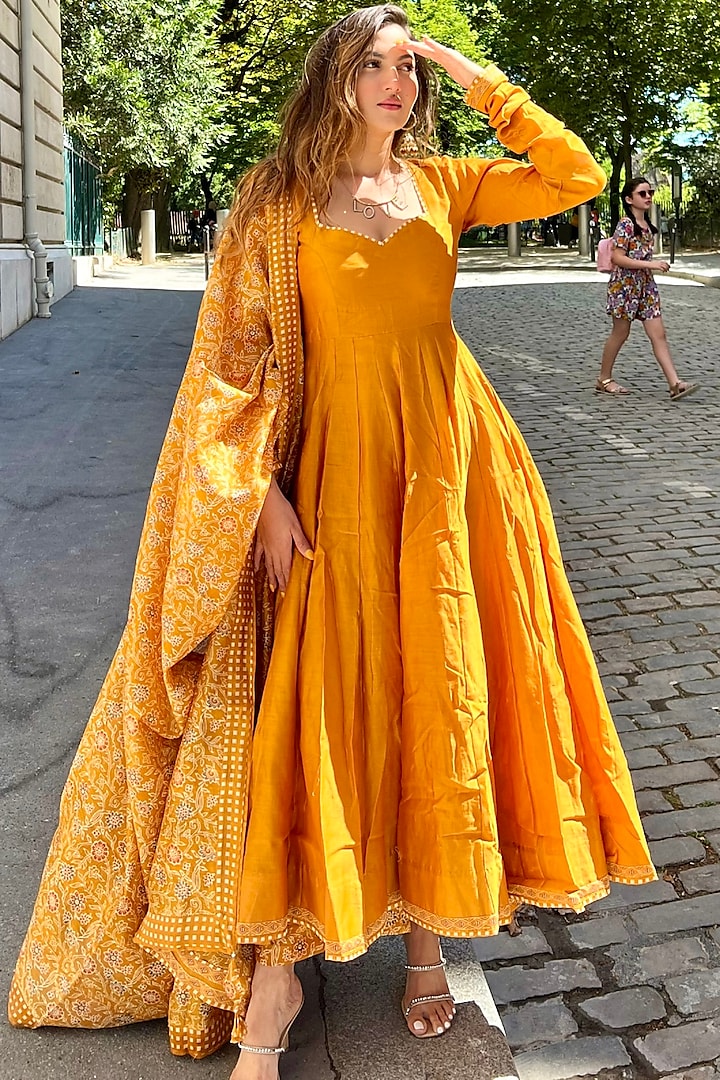 weetheart Neck Chanderi Cotton Anarkali Kurta with Printed Palazzos & Dupatta | Women’s Ethnic Set Malaysia | Festive & Party Wear