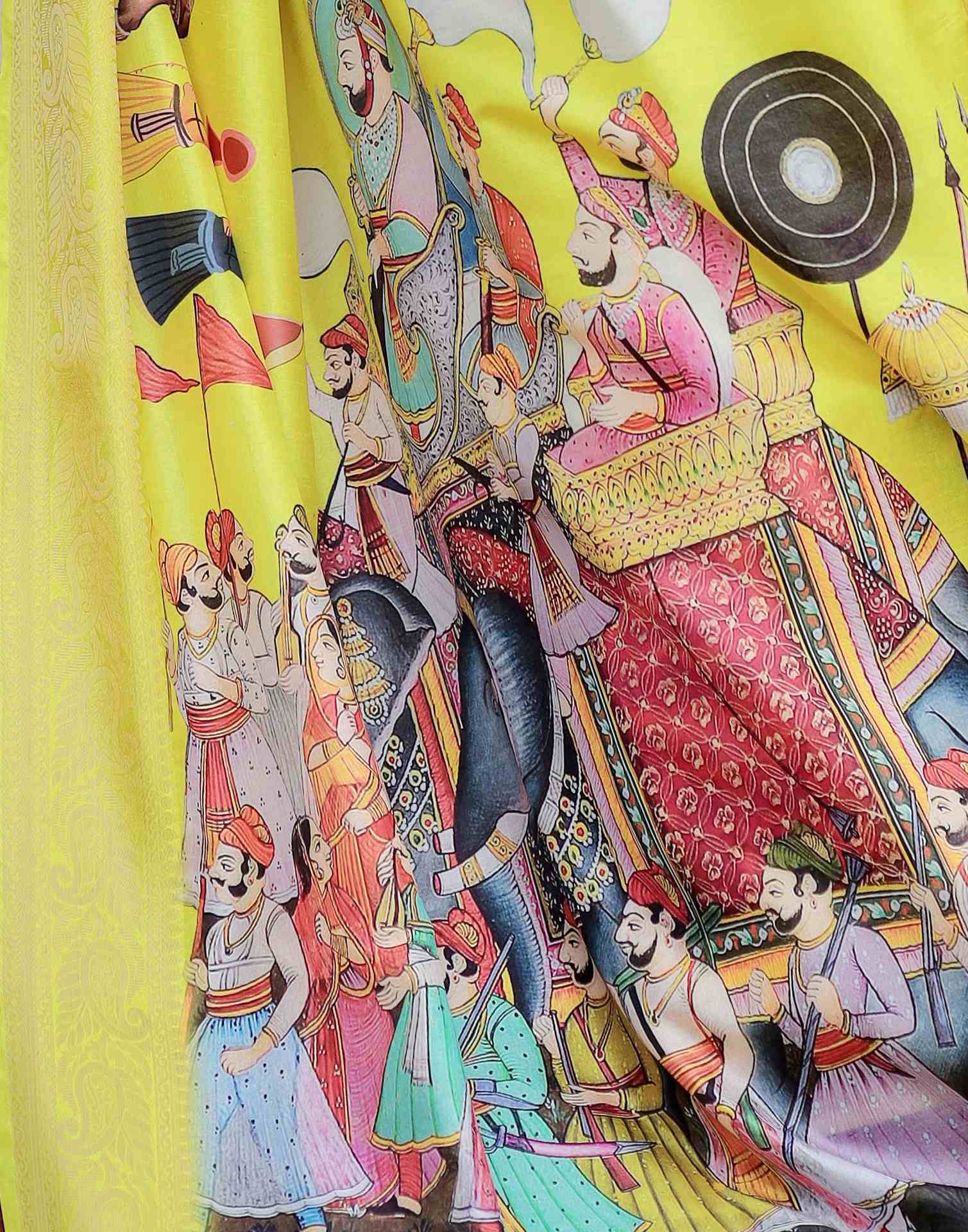 Yellow Tussar Silk Printed Kalamkari Saree